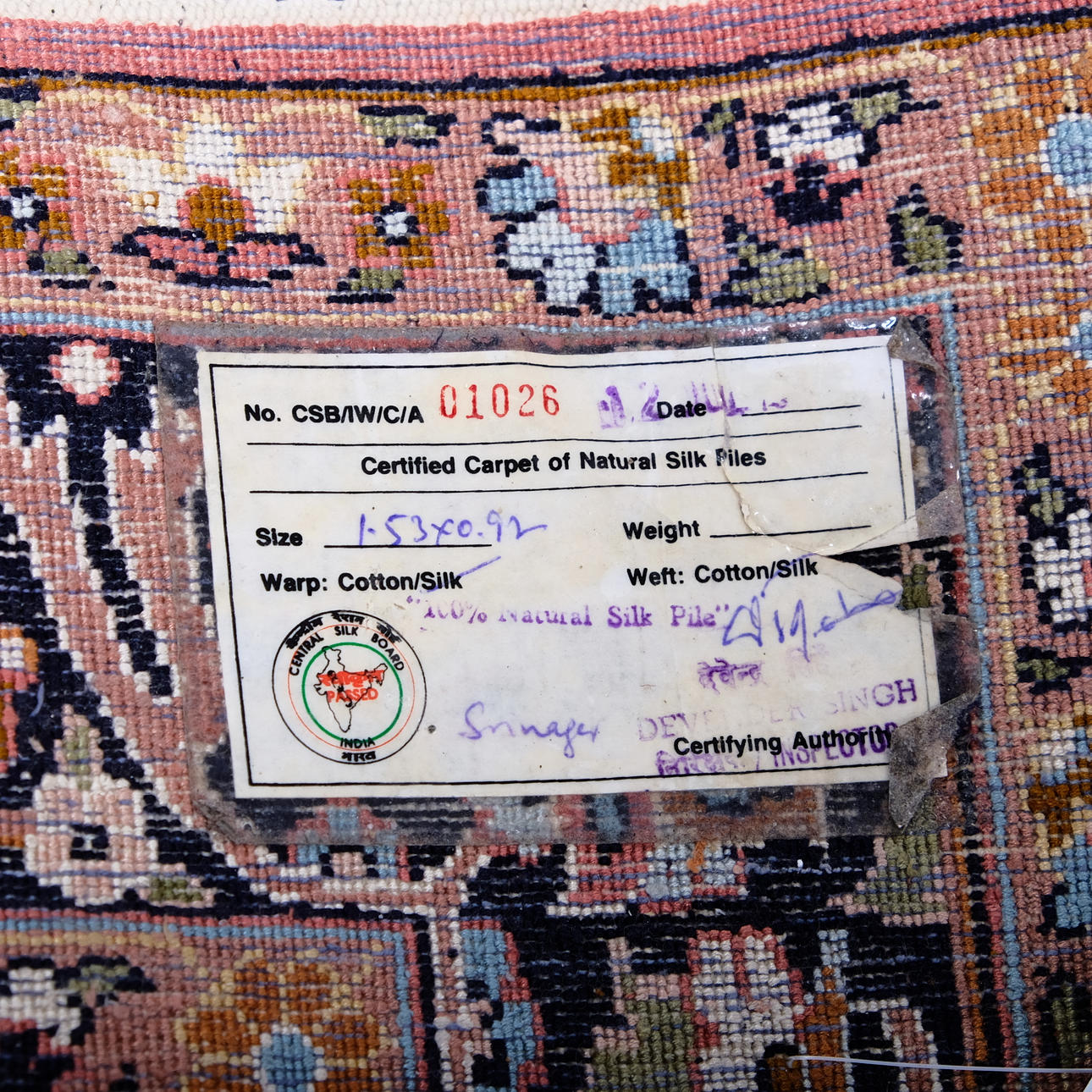 Håndknyttet i uld og silke indretning af blomster med central medaljong