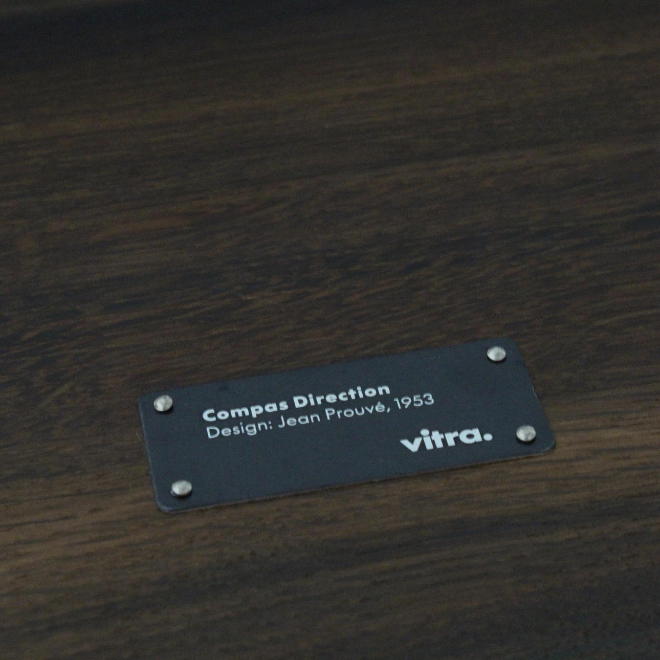 Compas Direction-skrivebordet er designet af Jean Prouvé med elegant spredte metalben, der minder om de sammenklappelige arme på et kompas (fransk „le compas“).
