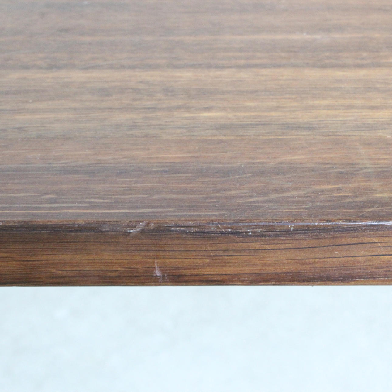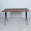 bordplade i massivt træ, pulverlakeret stålplade, med producentens badge på undersiden,