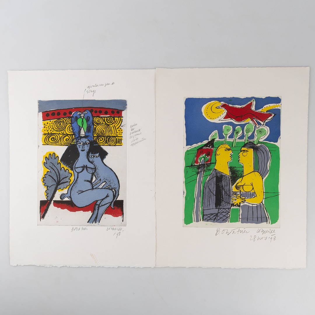 4323685. BEVERLOO CORNEILLE. Kompositioner, 2 stk., ætsninger, uindrammede blade.