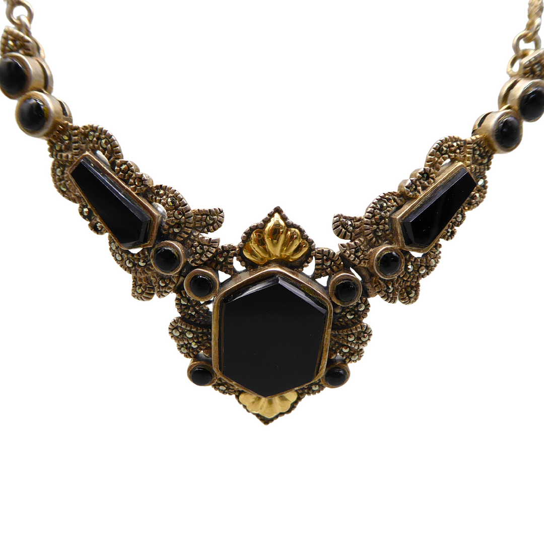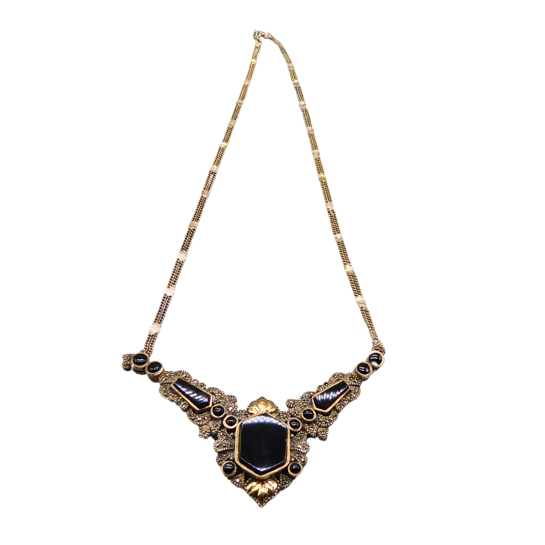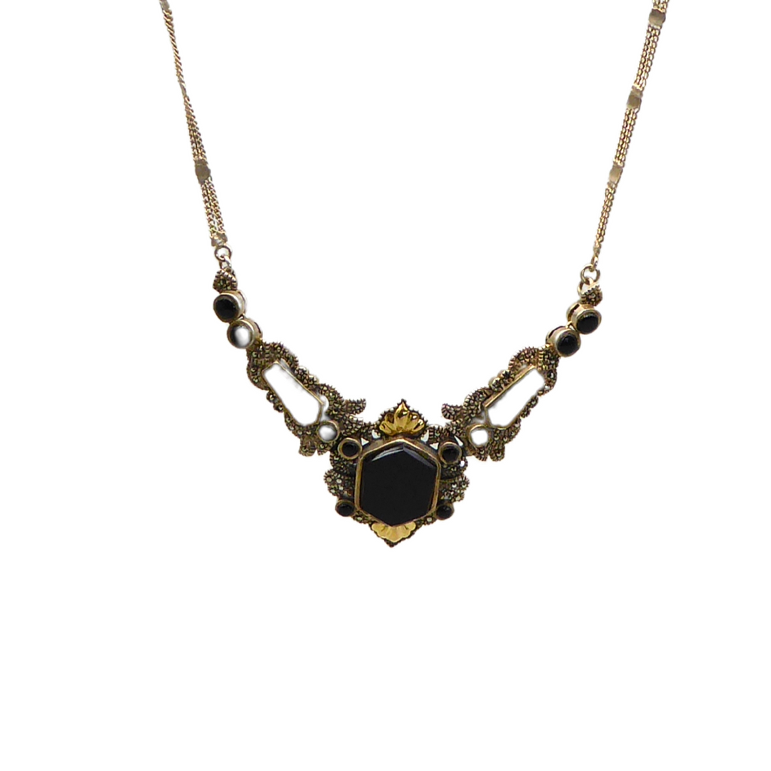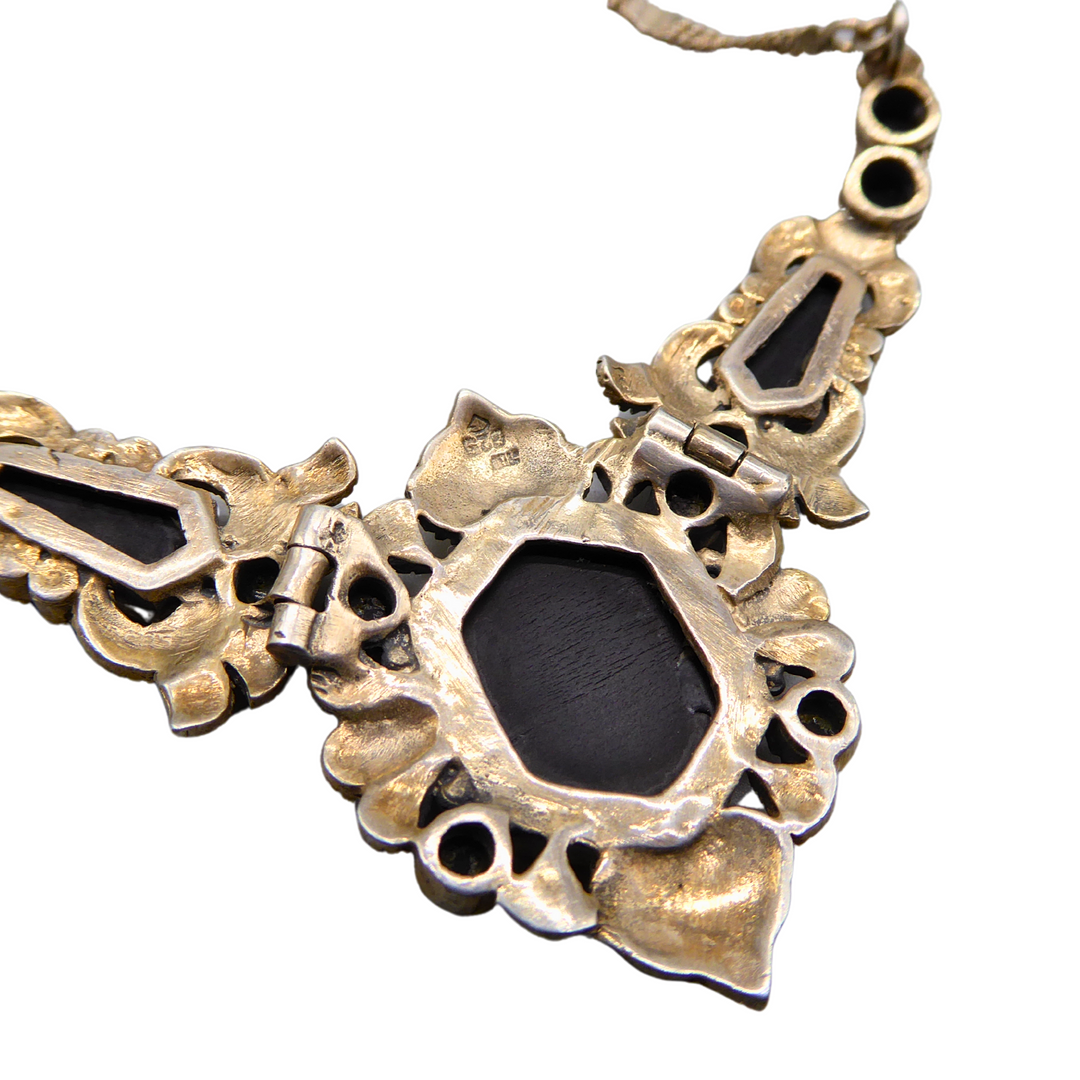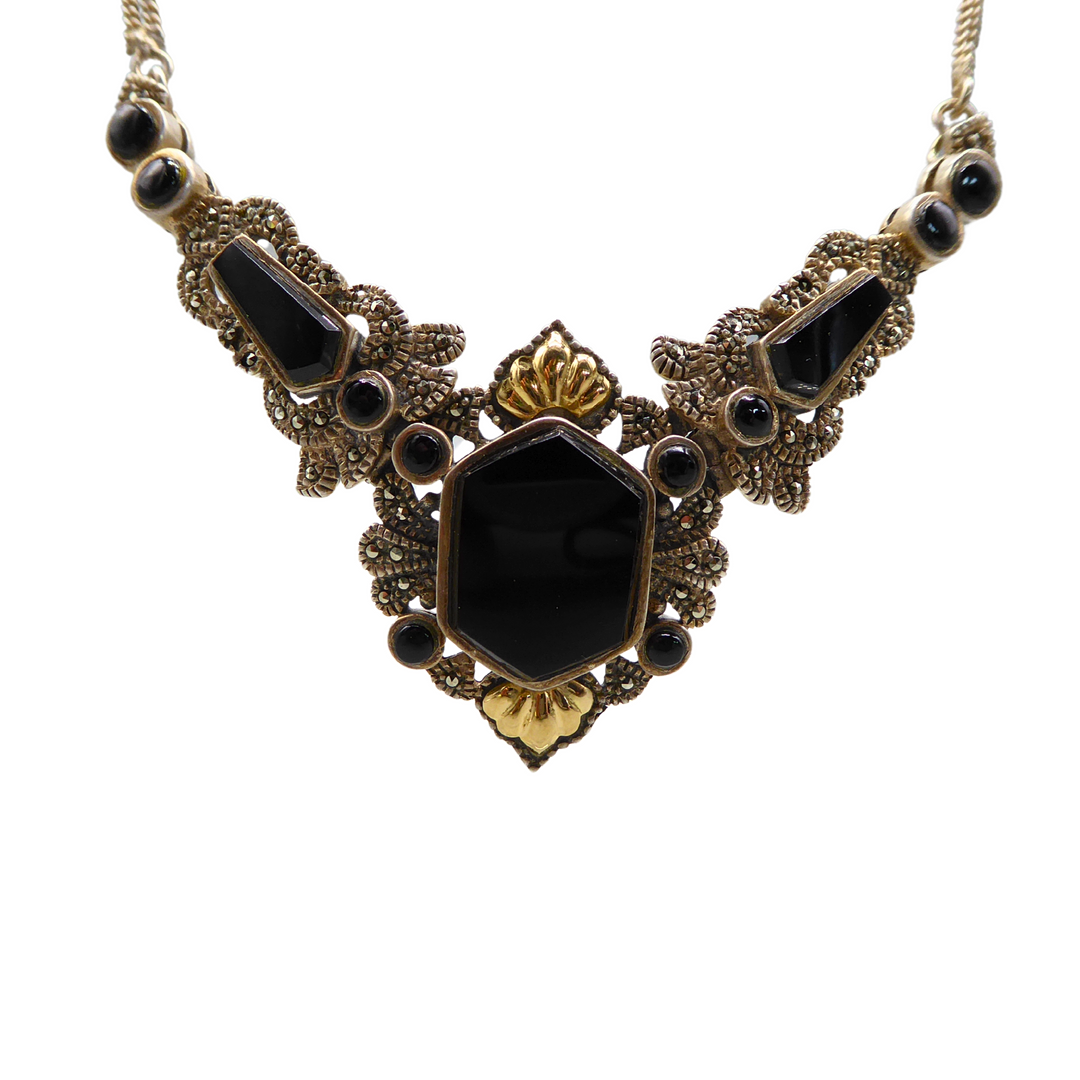 4324279. 925 SØLV HALSKÆDE SÆT MED OBSIDIAN.