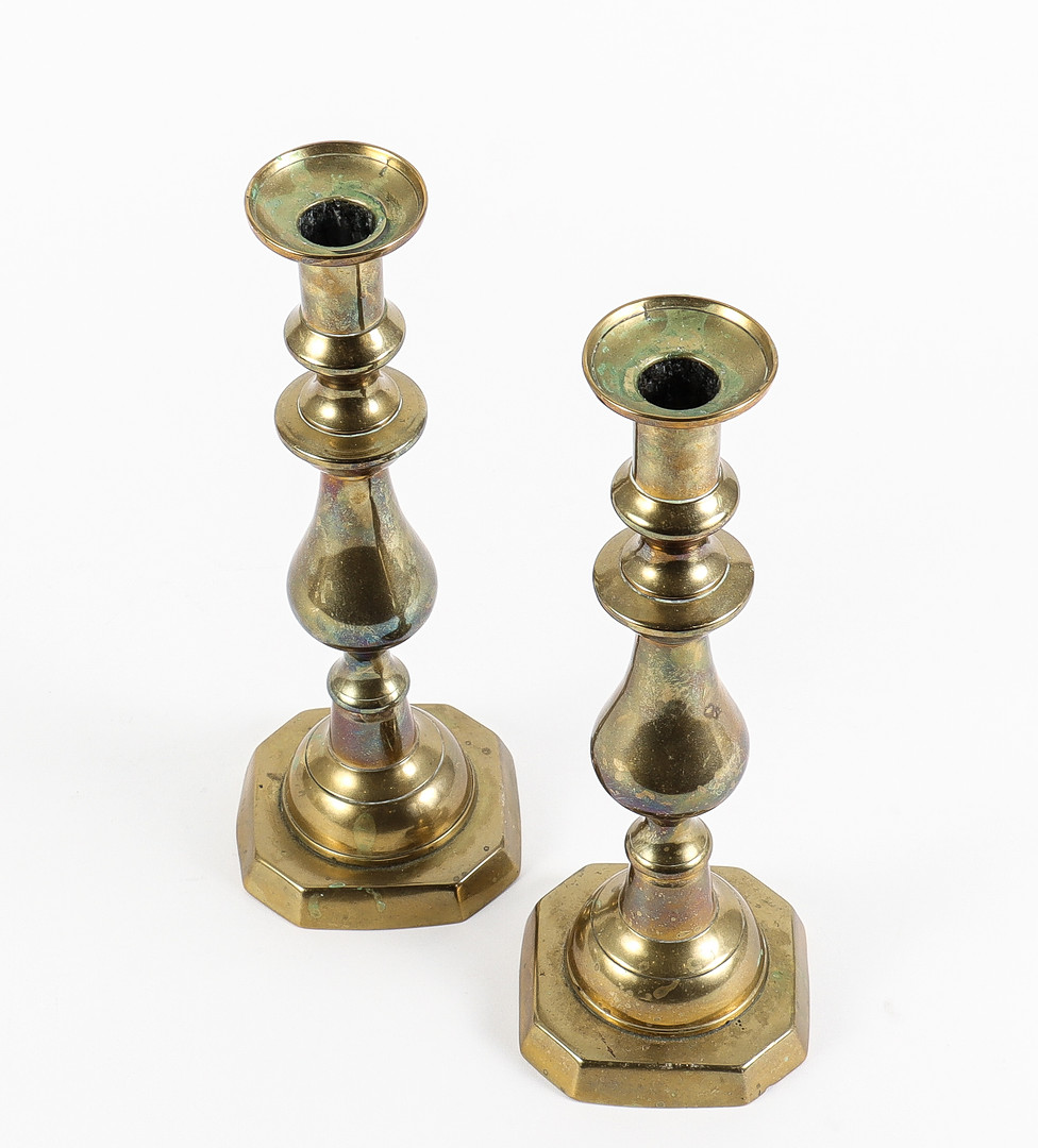4324354. Lysestager, messing, et par.