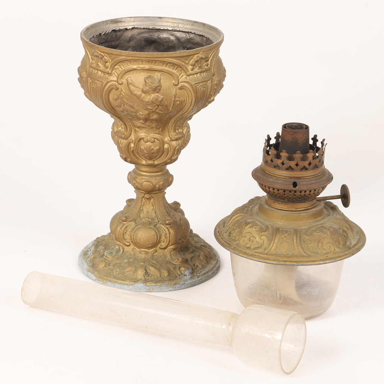 4324691. SOFABORD LAMPE, metal og glas, Rococo stil.