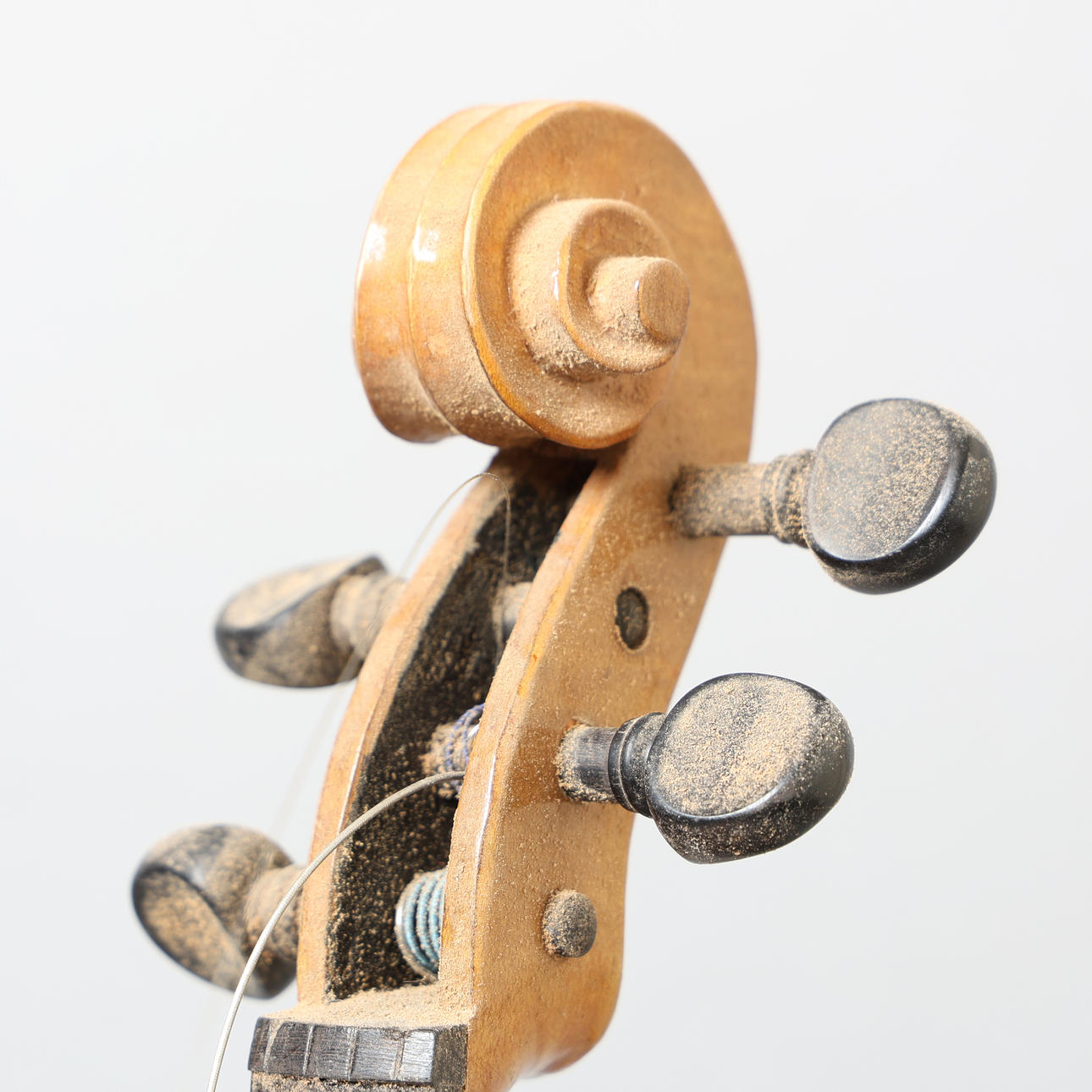 Manglende snore, bro, halestøtte og hakestøtte, lejlighedsvis mindre spåner, ellers almindeligt slid og mærker svarende til alderen.