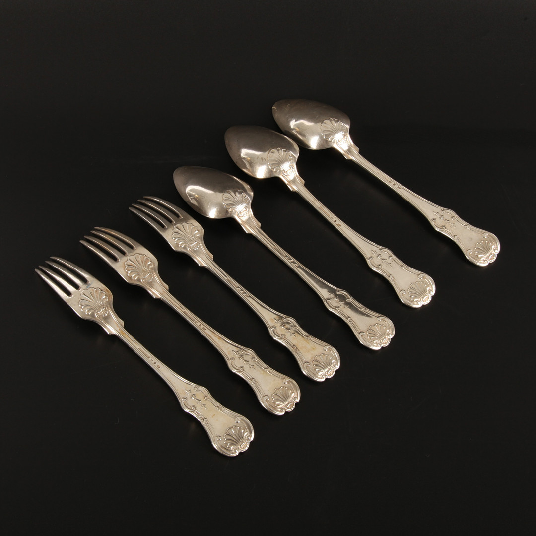 4324977. SØLVBESTIK, 6 stk., „Rococo“, 1850.