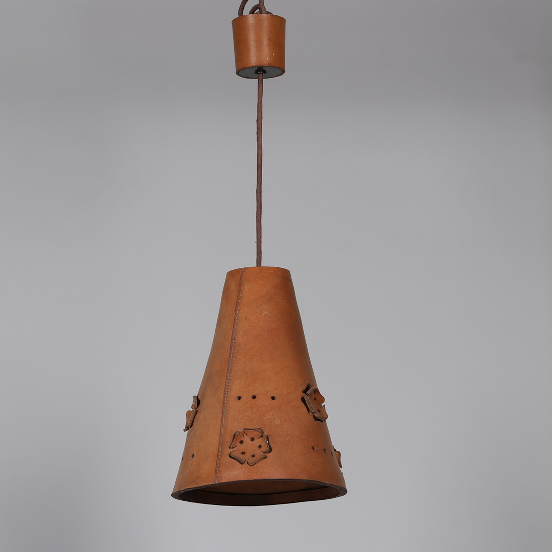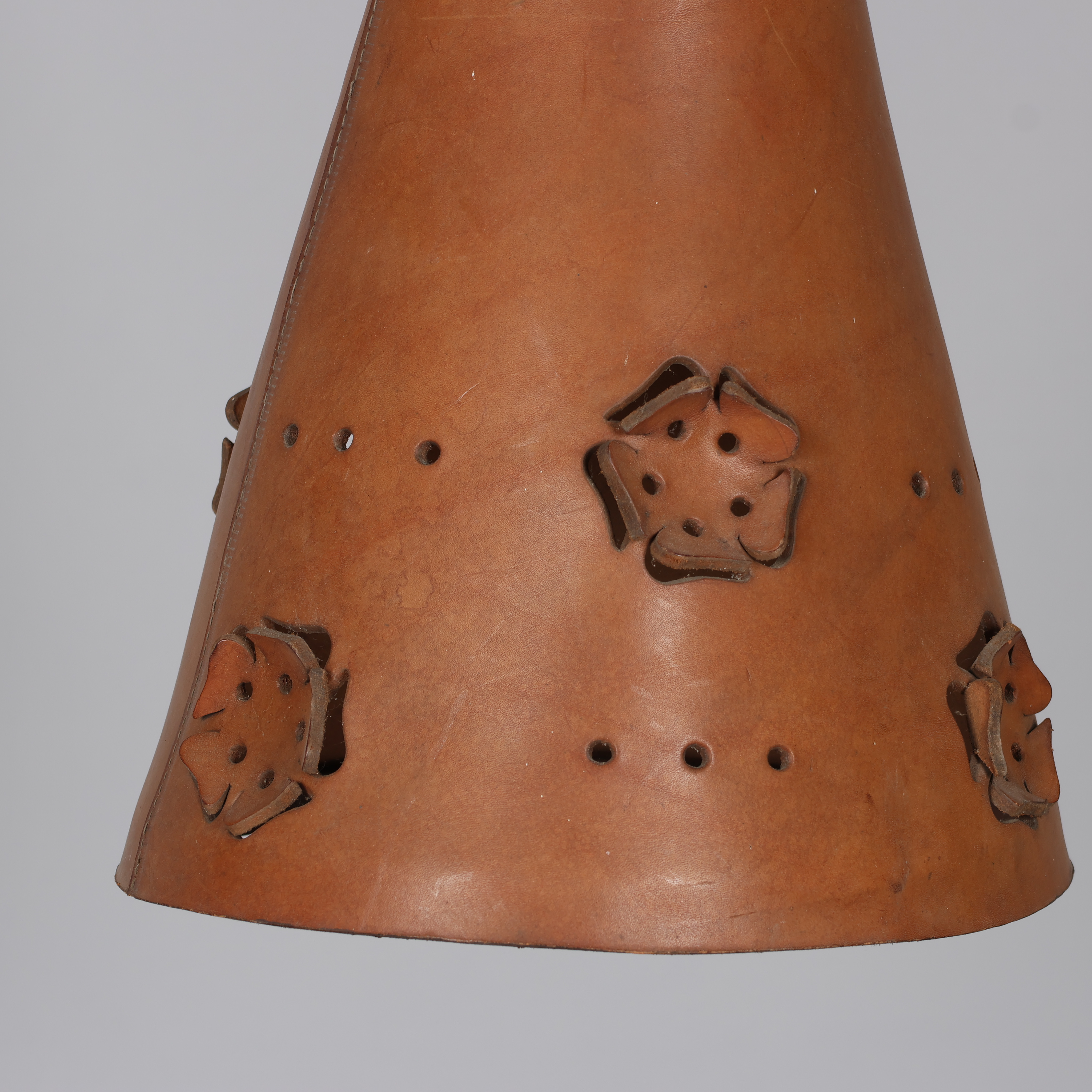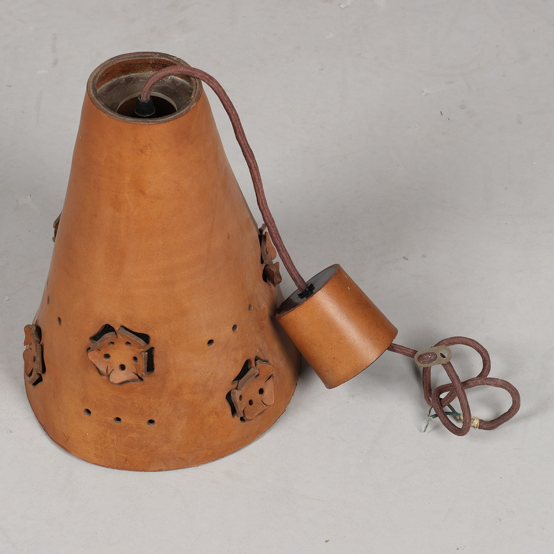 4325025. Tragtformet pendel af perforeret kernelæder, 1960-70'erne.