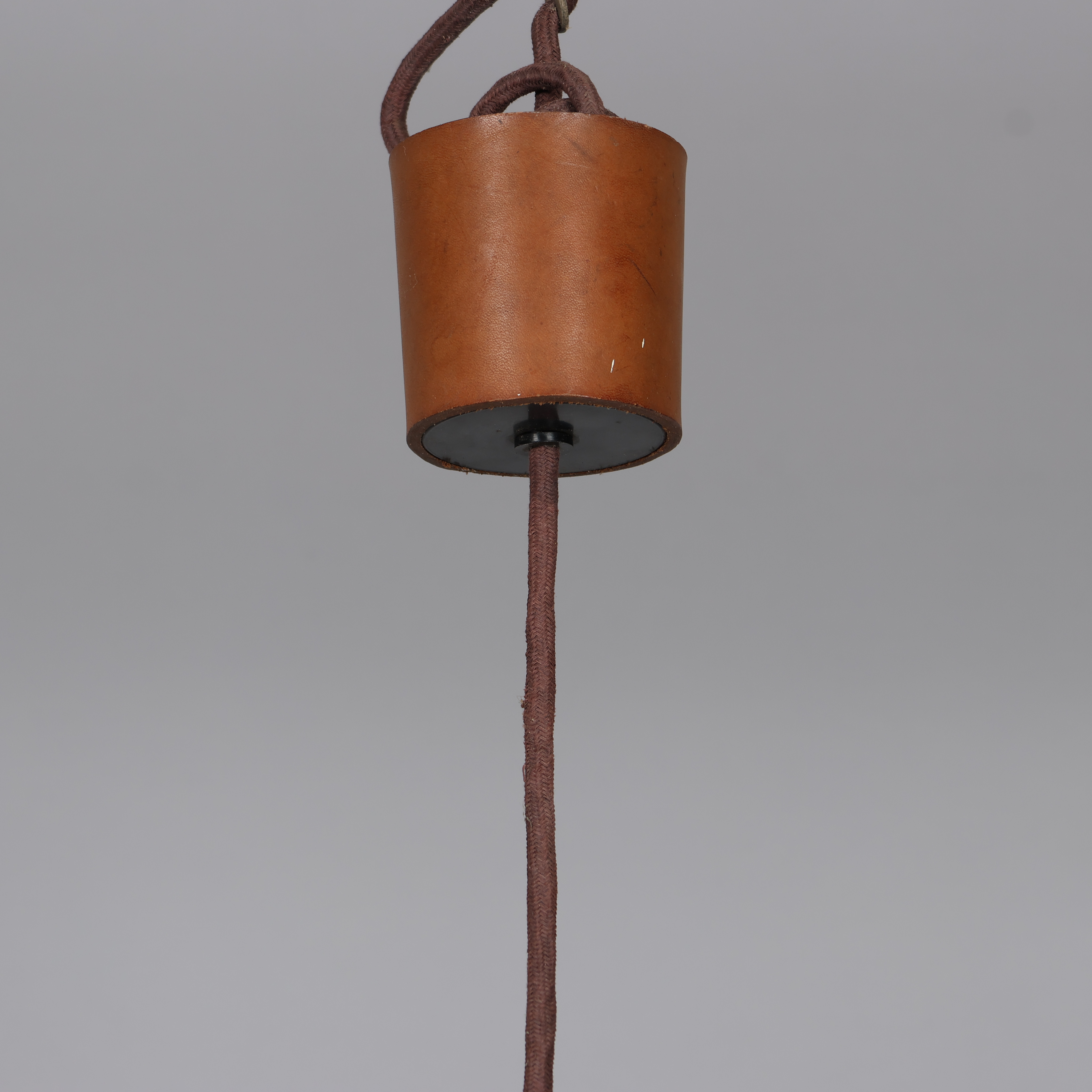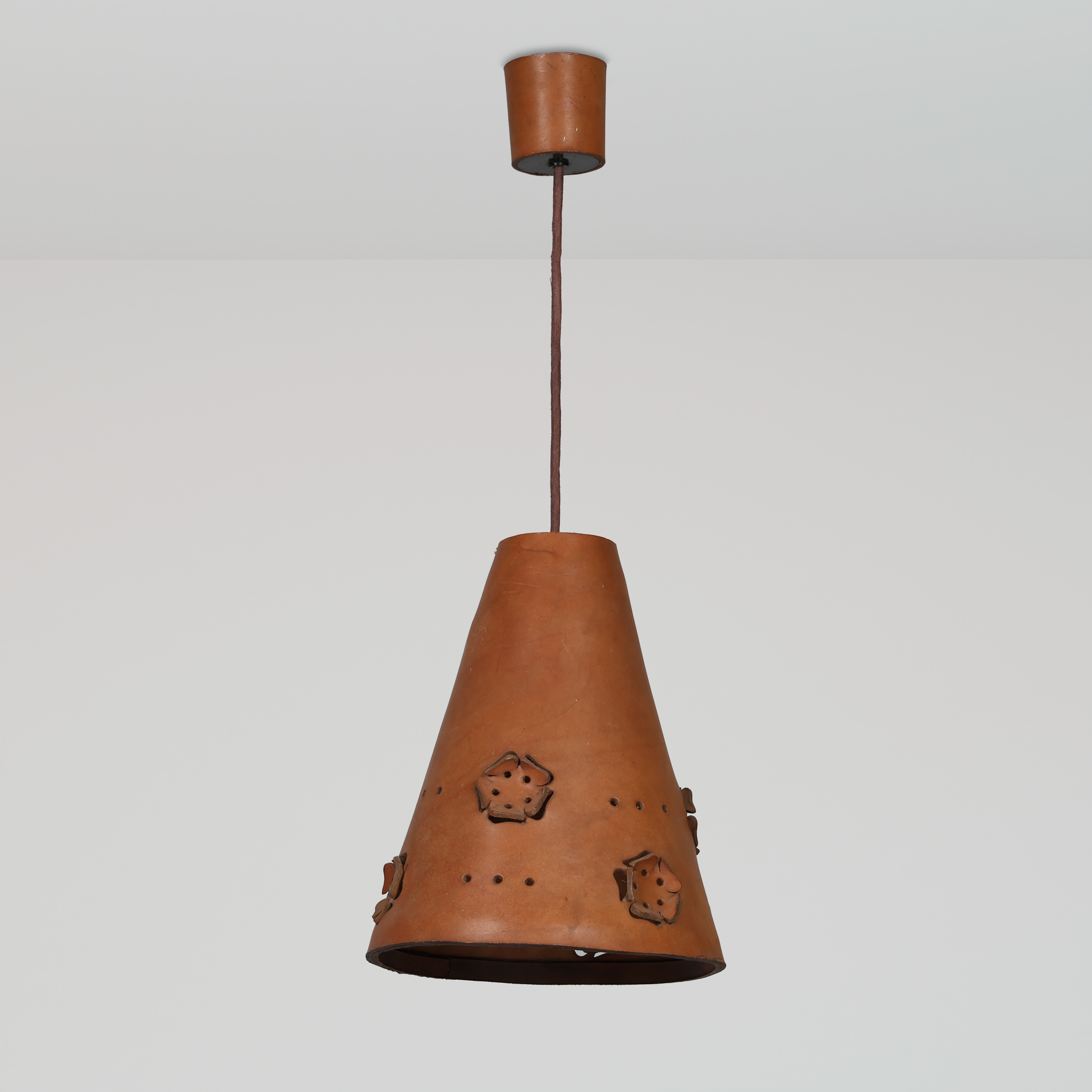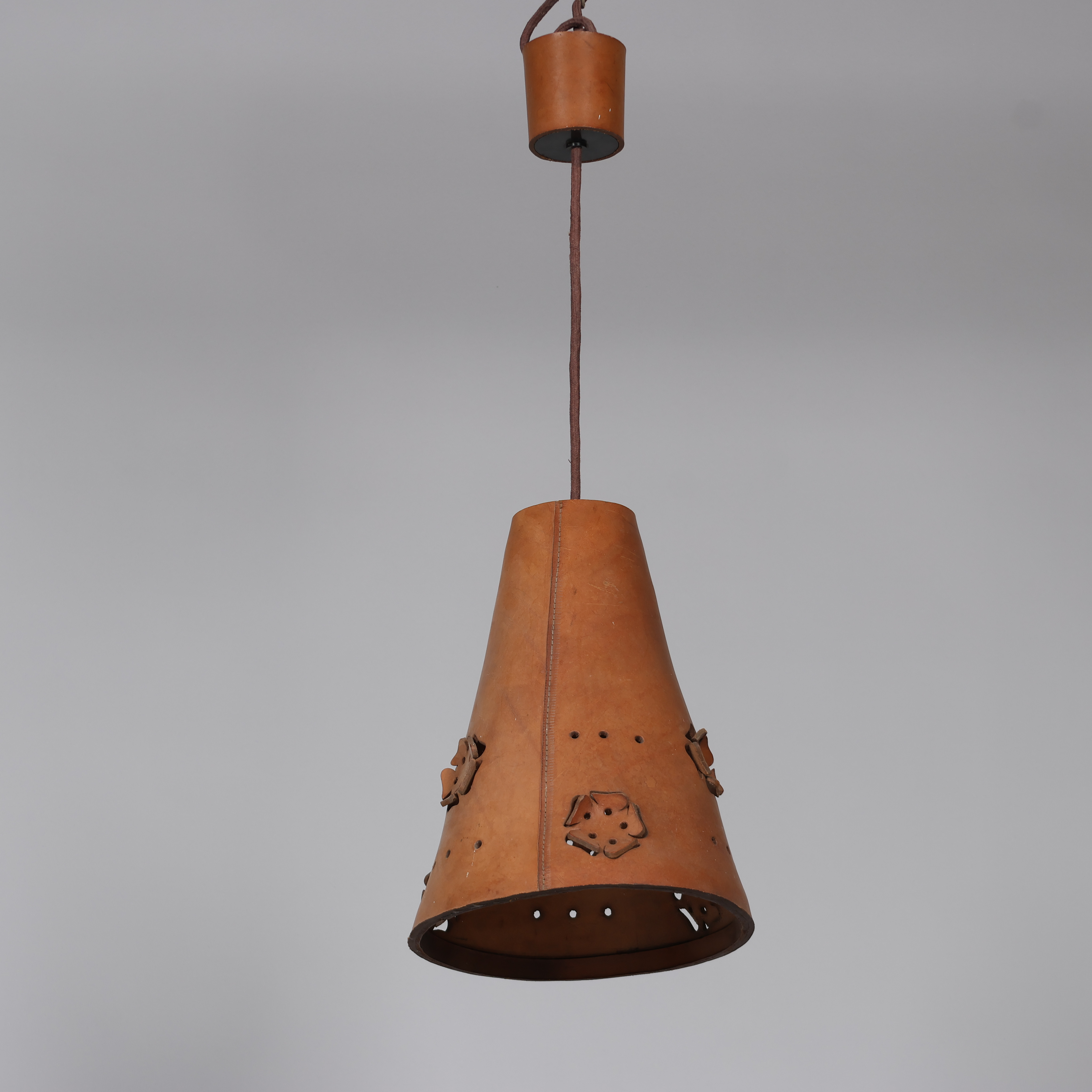 4325025. Tragtformet pendel af perforeret kernelæder, 1960-70'erne.