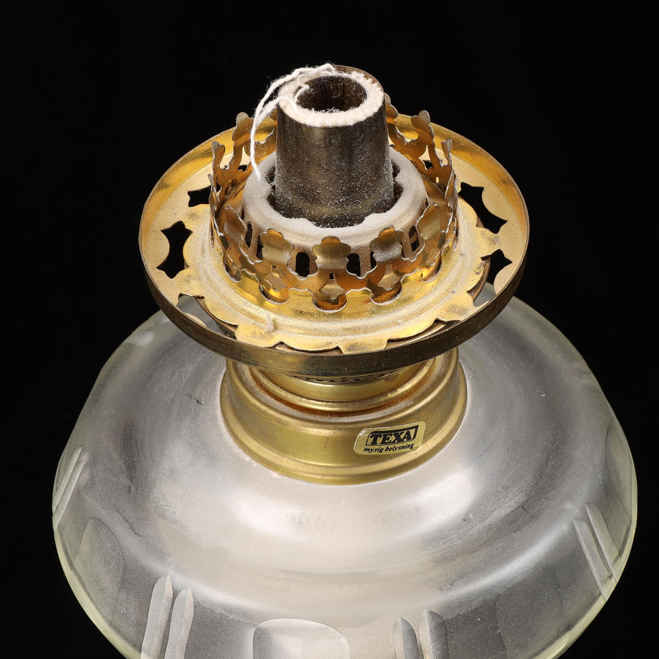 4325526. PETROLEUMLAMPE, messing, glas, AB Texa.