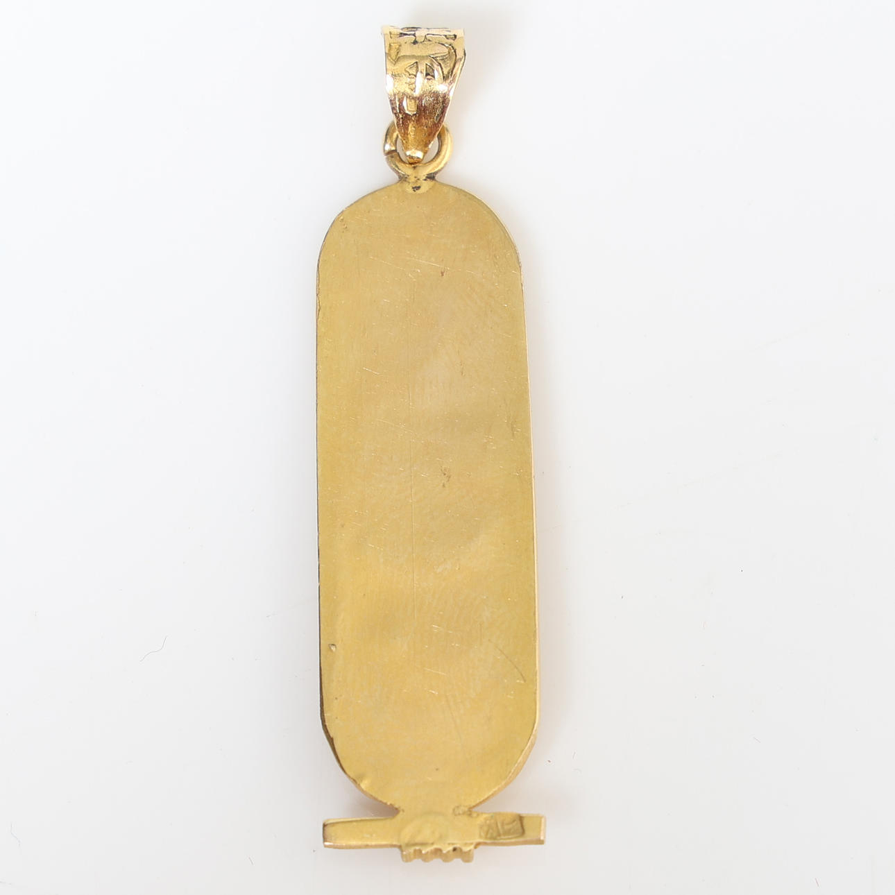 Dekoreret med hieroglyffer, analysemærker til bunden af vedhænget, 2,8 gram.