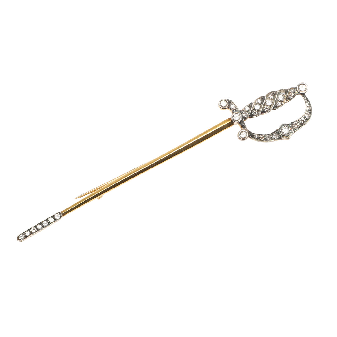 4326848. SVÆRD BROCHE I SØLV, GULD OG DIAMANT.
