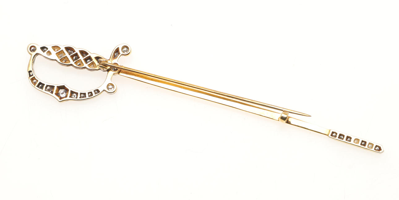 4326848. SVÆRD BROCHE I SØLV, GULD OG DIAMANT.