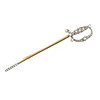 Fæltet og spidsen med briljantslebne diamanter, skaftet i 9 kt guld og greb og spids i sølv, ingen mærker, 10,5 cm, 6,5 g.