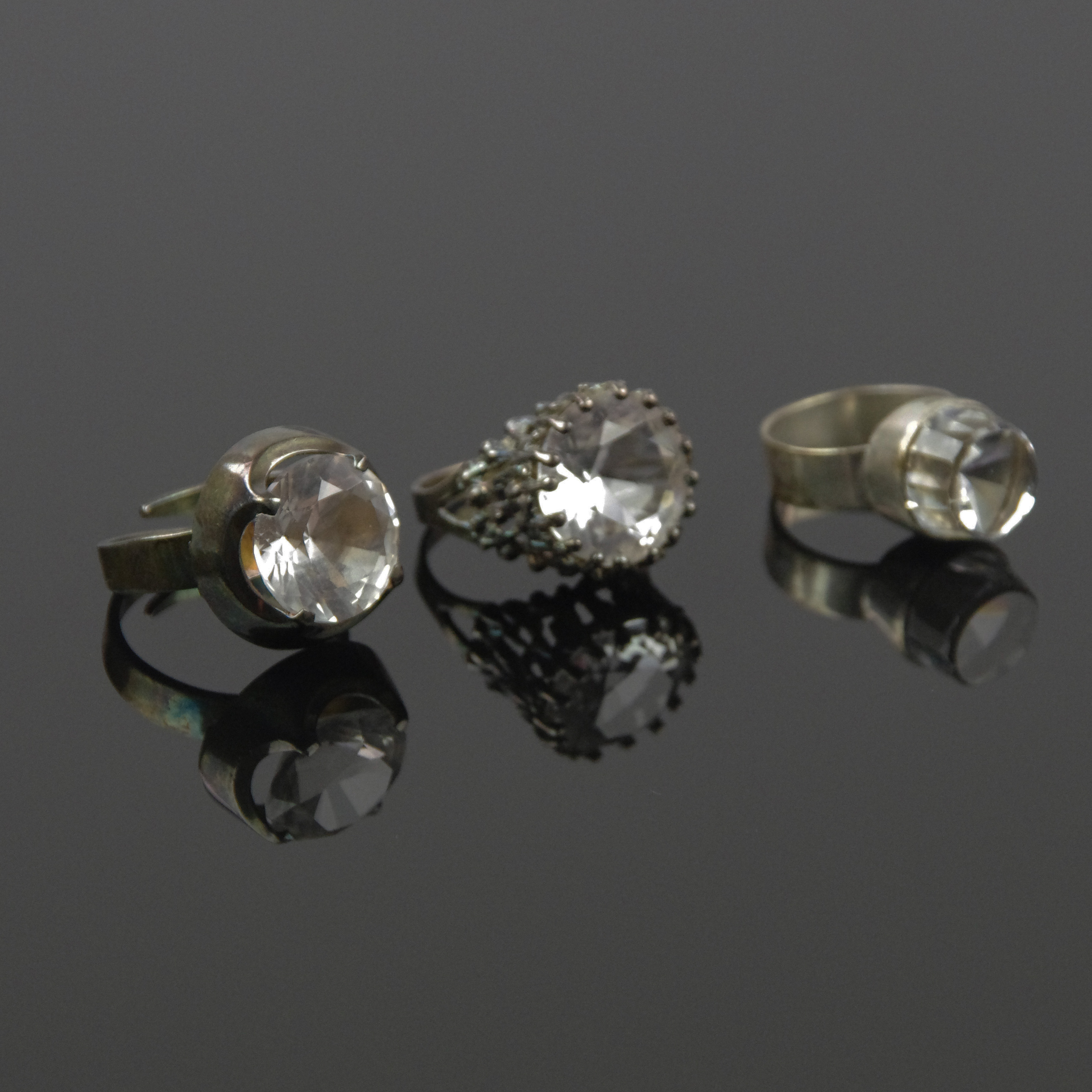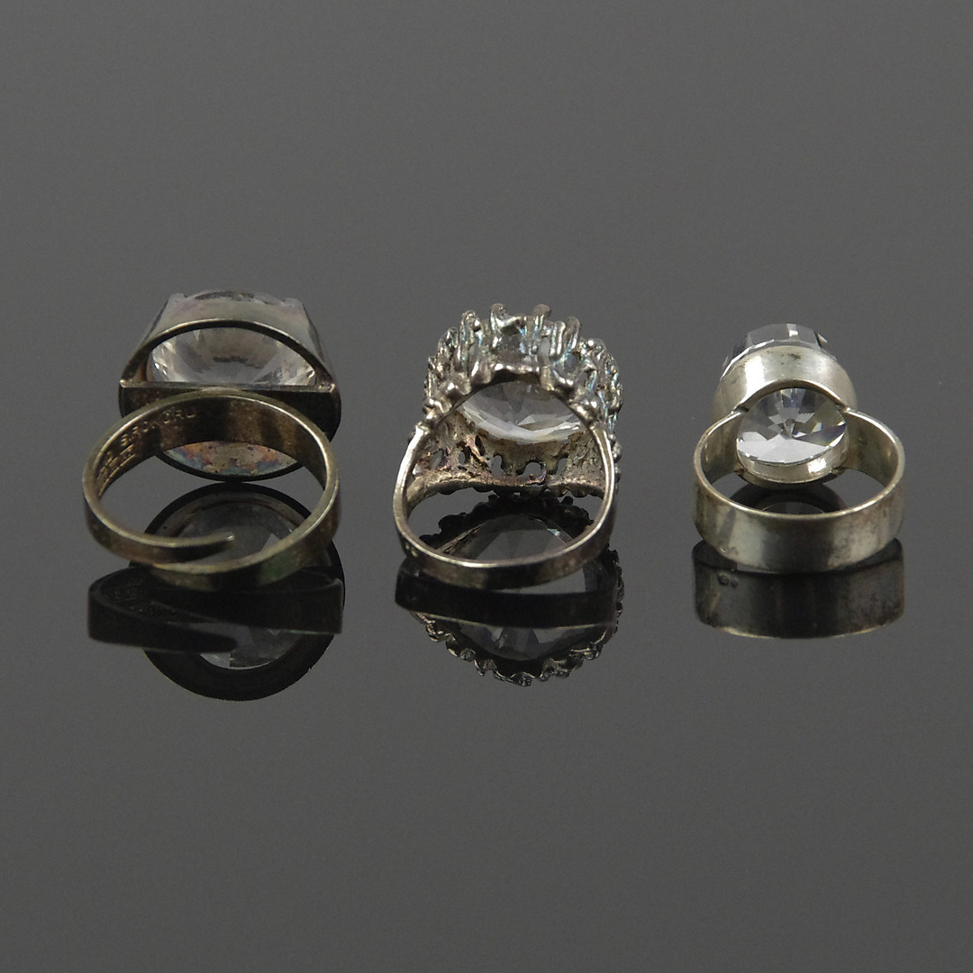 432818. RINGE, 3 stk., sølv med hvide sten.
