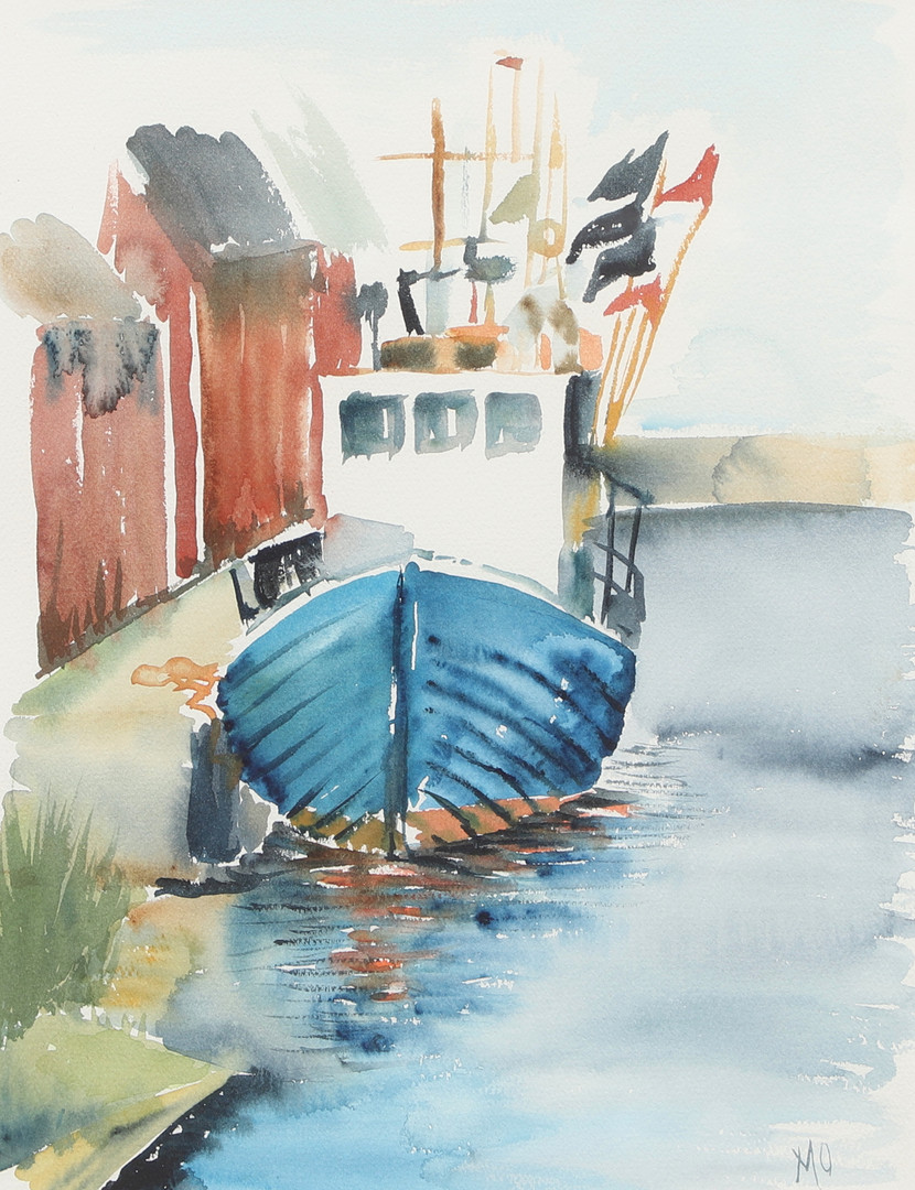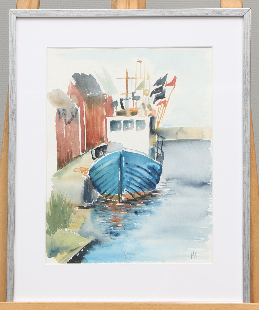 4328331. OIDENTIFIERAD KONSTNÄR. akvarel, fiskerbåd, signeret MO.