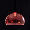 Skærm i rød plast, etiketmærkning, diameter ca. 50 cm.