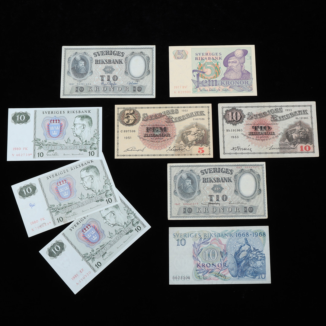 4329996. PENGESEDLER, 9 stk., Sverige, 1900-tallet.