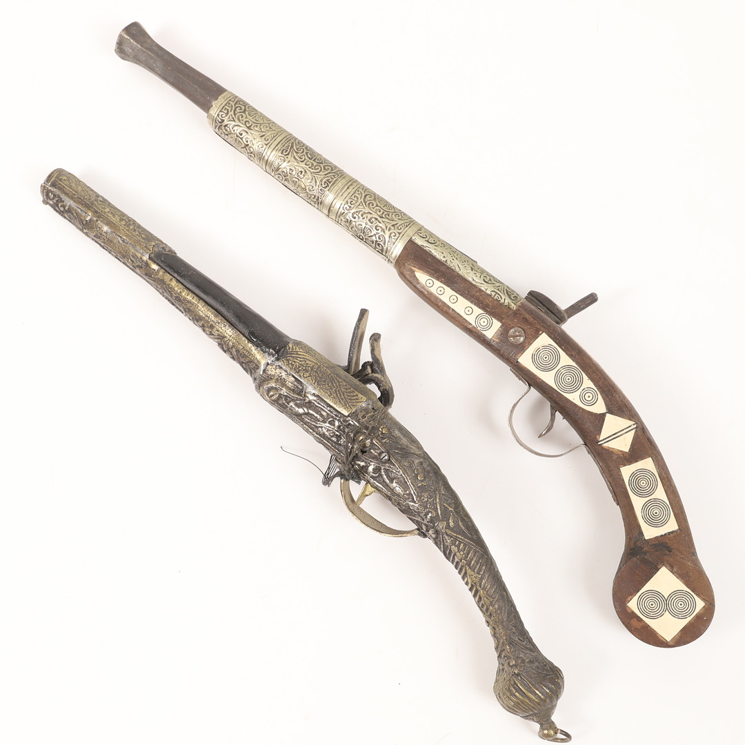 4329997. SLAGLÅSPISTOLER OG FLINTLÅSPISTOLER, 4 stk., replikaer.