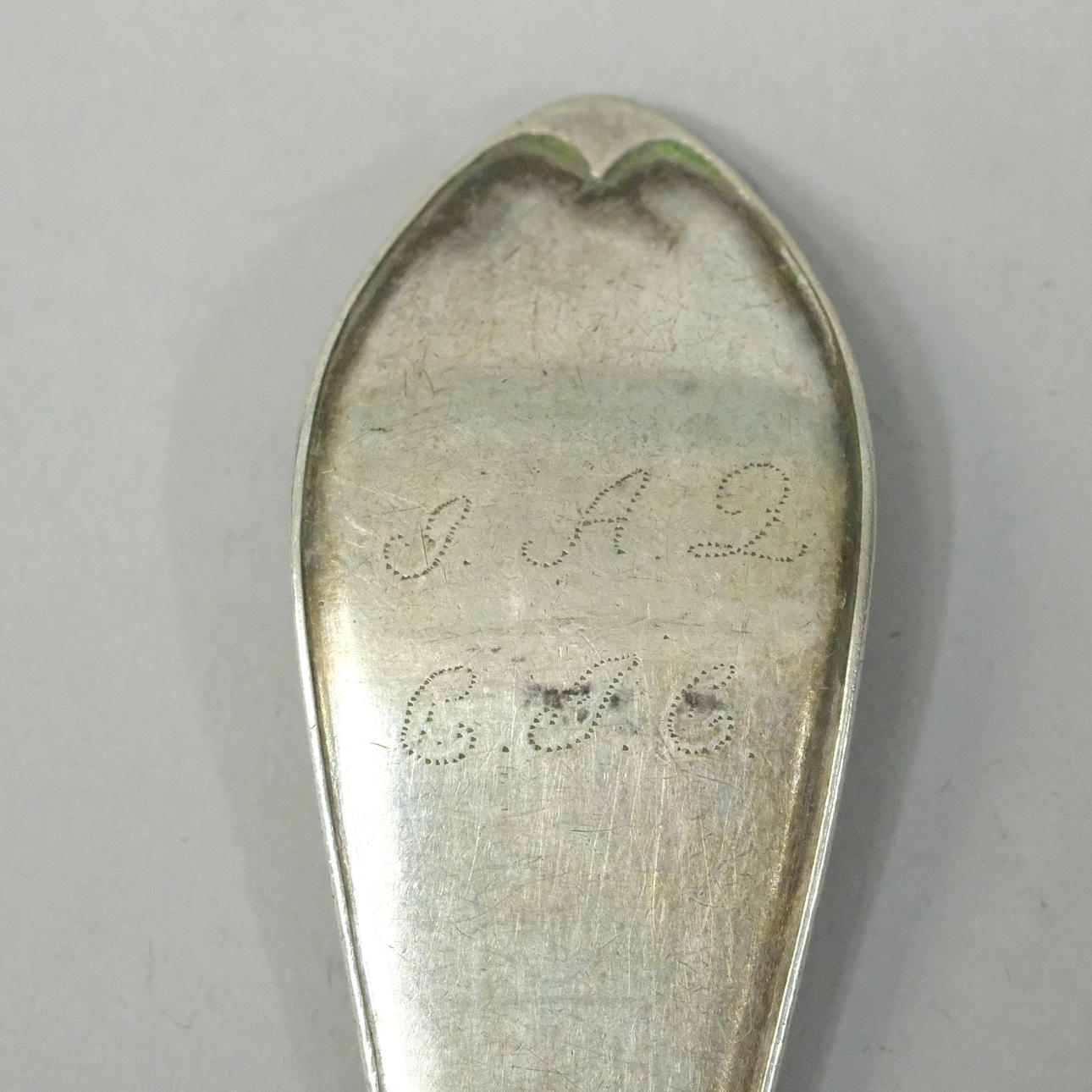 Svensk spidsmodel, med stansede nutidige monogrammer, længde 21 cm, vægt ca. 60 gram.