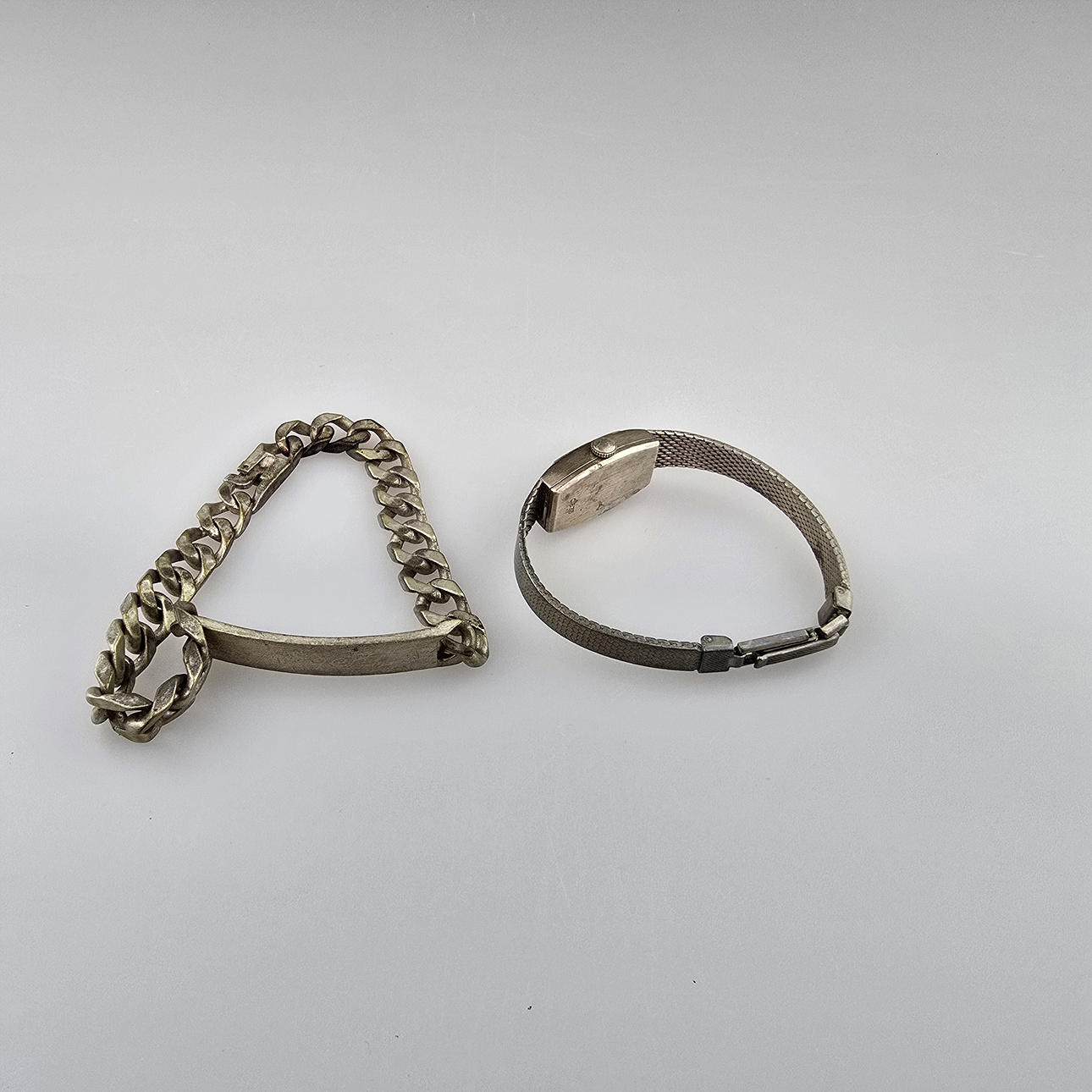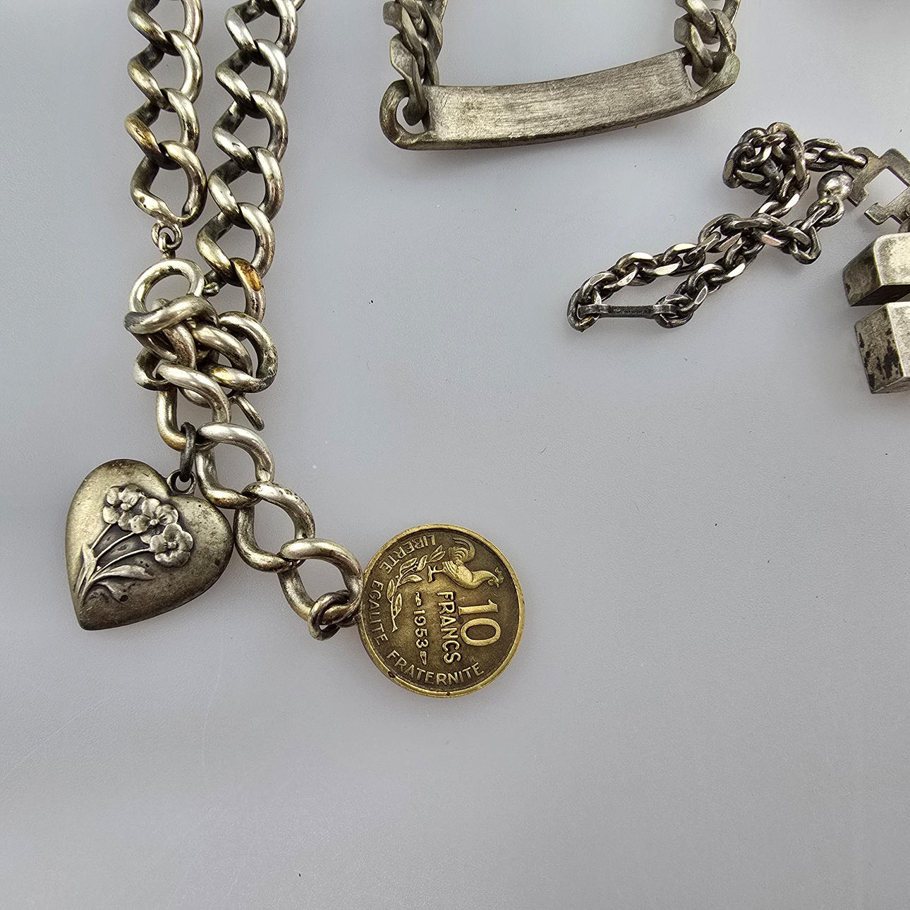 4331263. - En samling af gamle sølvsmykker, armbånd, urkæde.