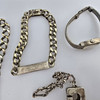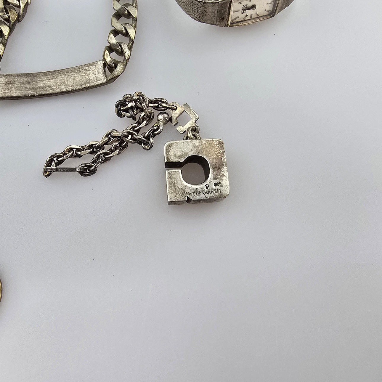 Parti 4x gamle sølvsmykker, 2 x armbånd, 1 x urkæde, vedhæng, totalvægt: 131 gram.
