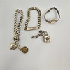 - En samling af gamle sølvsmykker, armbånd, urkæde.