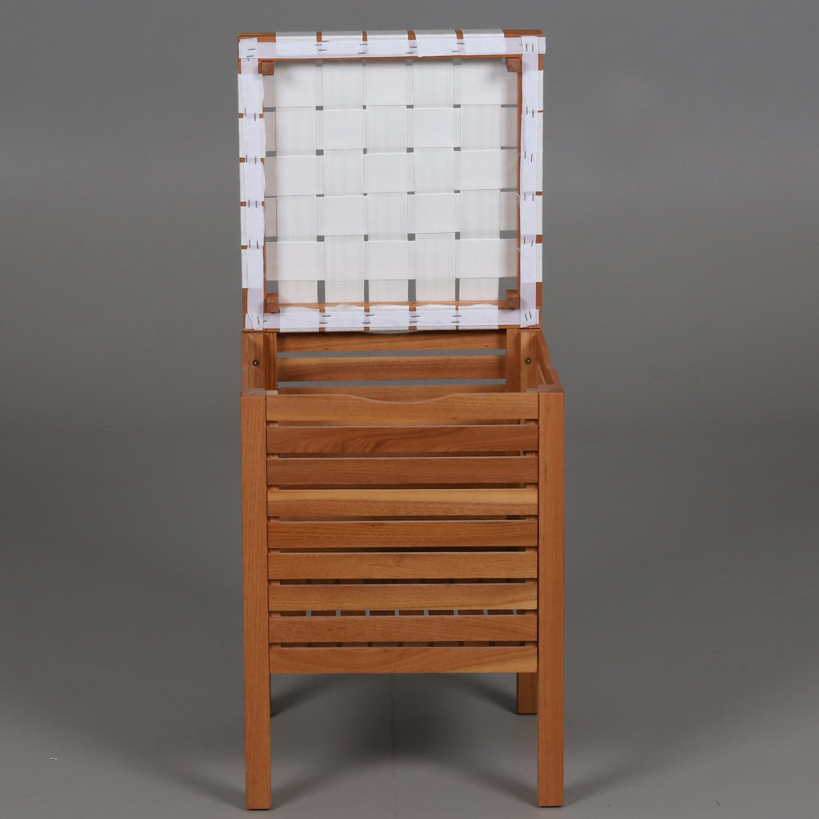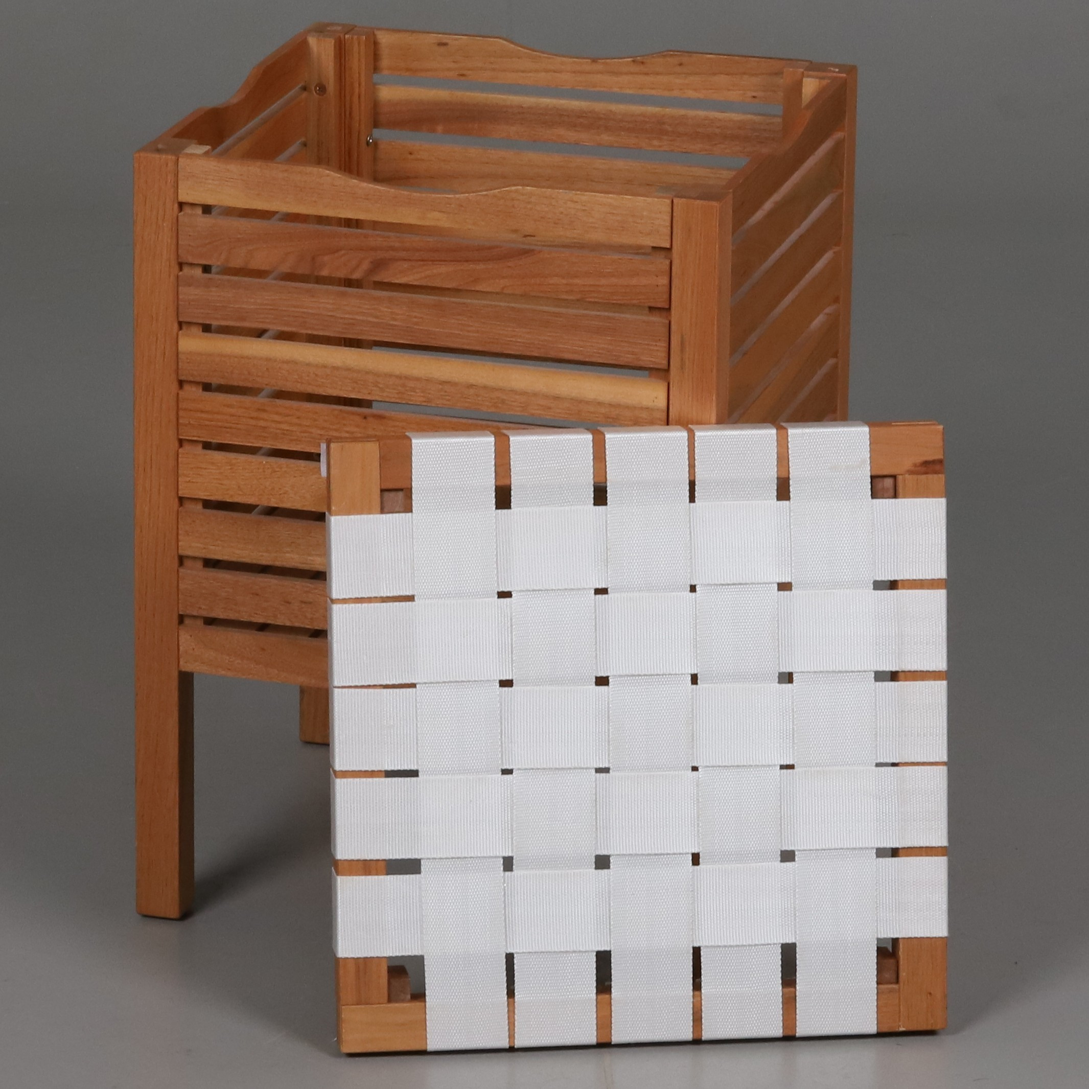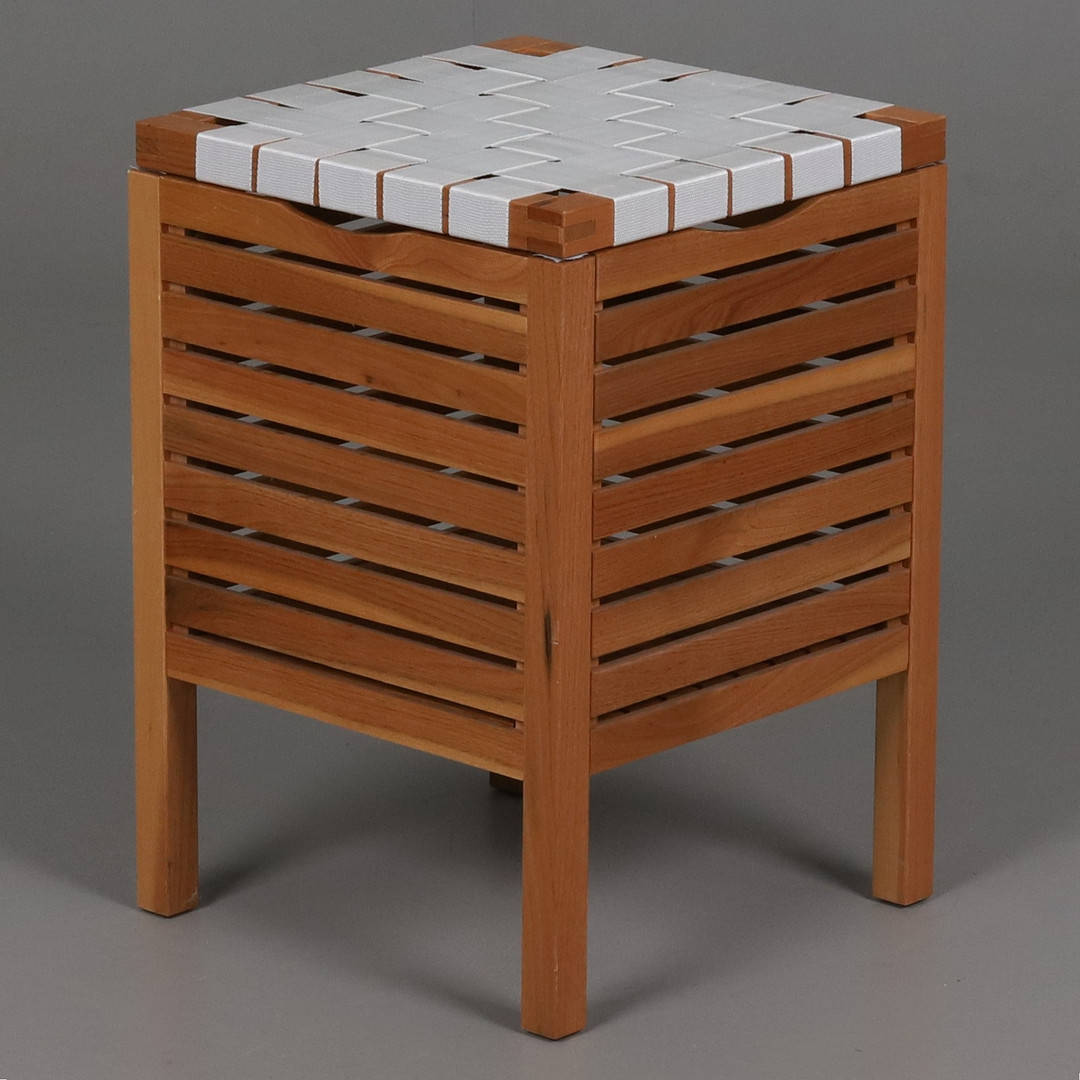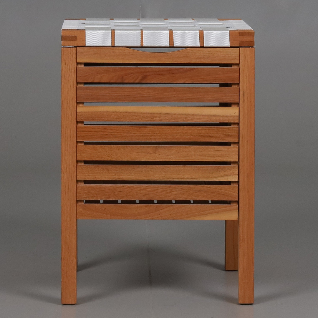 4331359. SKAMMEL MED OPBEVARING, teak, kurvesæde.