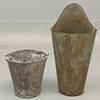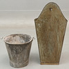 Gryde med huller til ophængning på væggen, højde ryg ca. 75 cm, front ca. 55 cm, bredde ca. 36 cm, dybde ca. 20 cm.