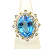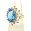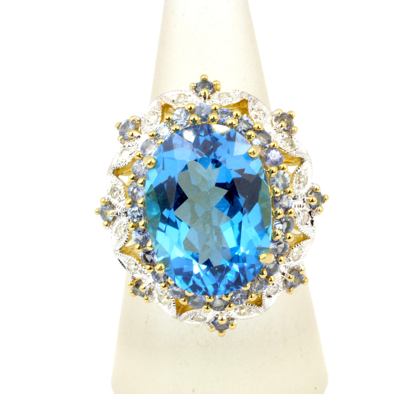 En dejlig 925 sølv forgyldt ring sæt med en stor oval London-blå topas (18mm) omgivet af yderligere blå og hvid topas, UK ring størrelse Q.