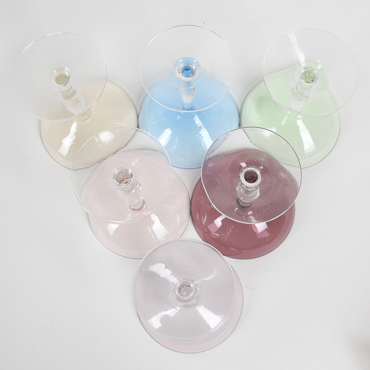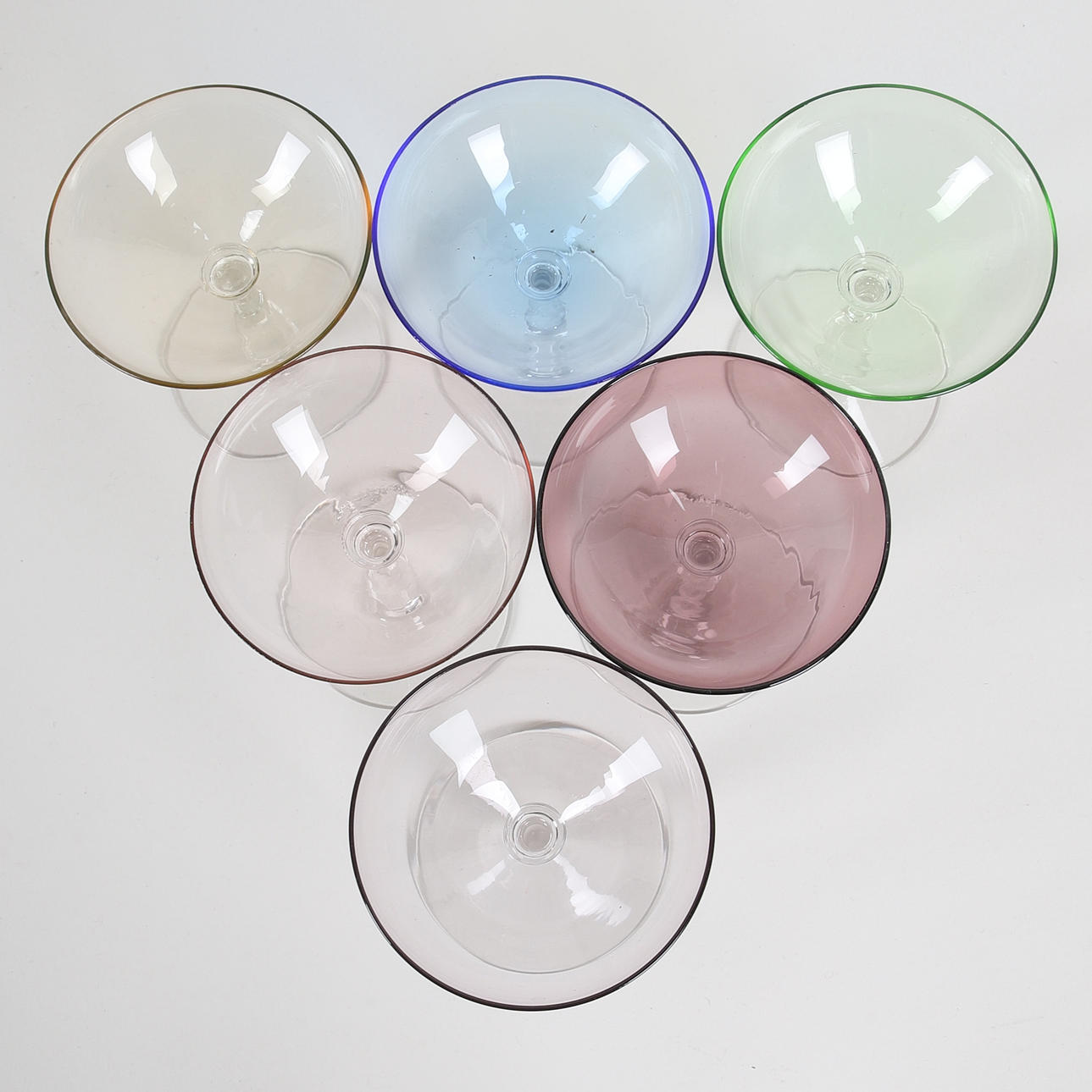 Sherryglas, 6 stk, farvede, 1930'erne.