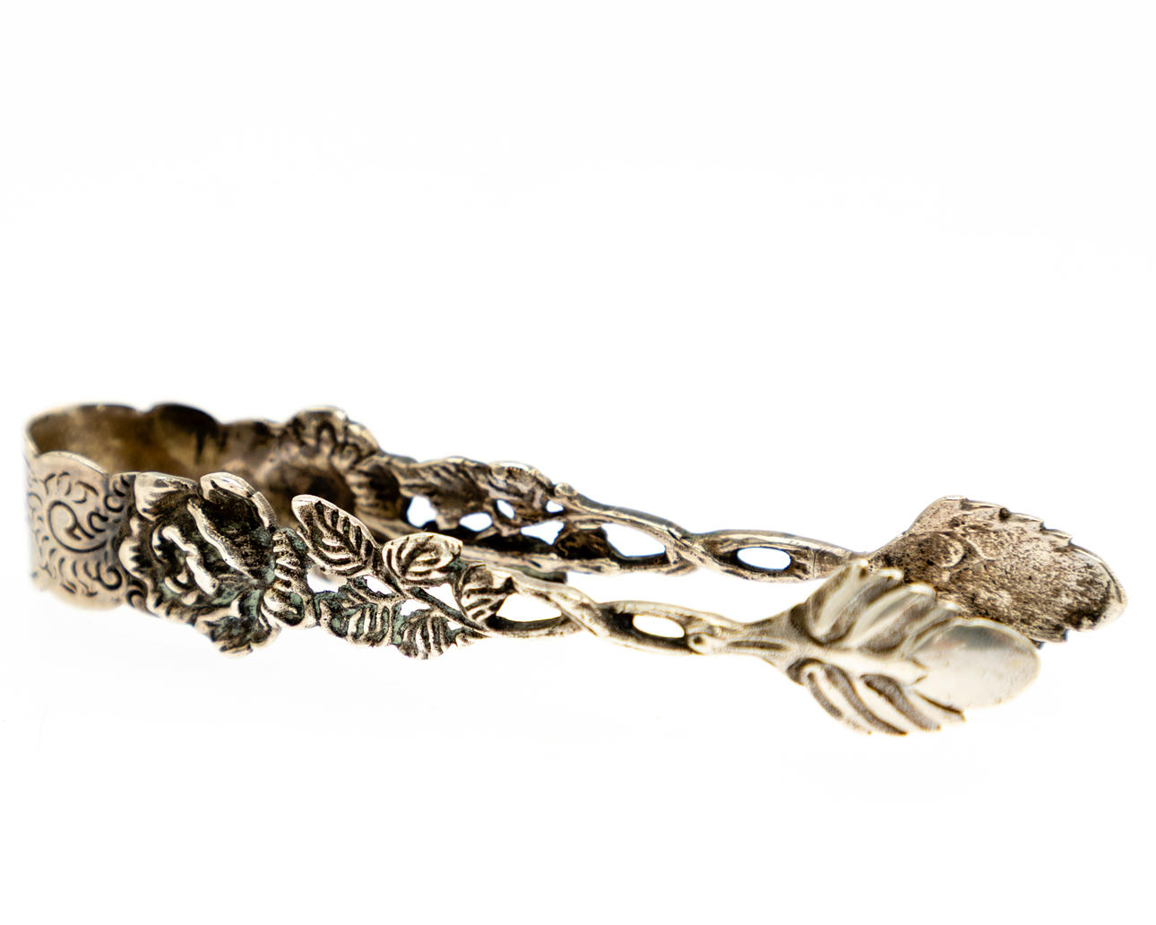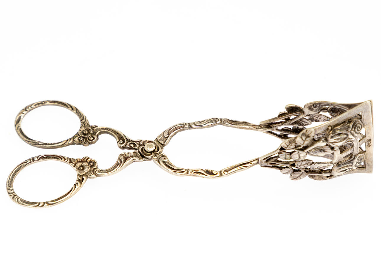 dessertbestik, wienerbrødtang og sukkertang med rosenblade, 800 sølv, med sølvstempel;