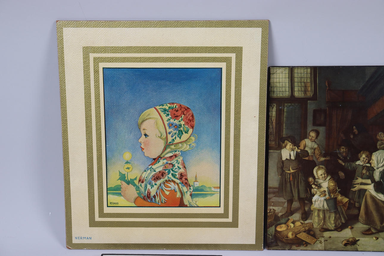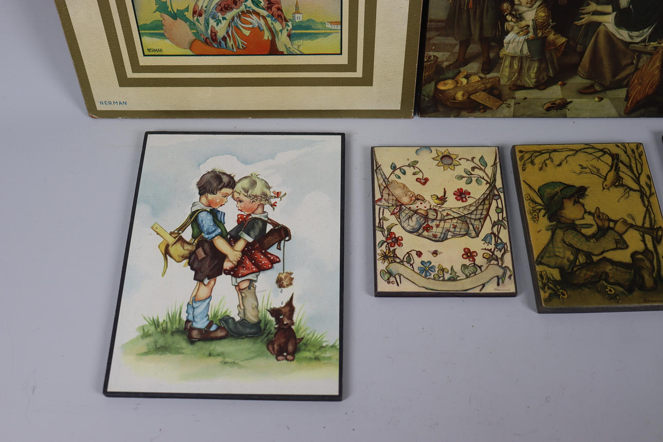 MALERIER, tryk på panel, børn/naive motiver, 7stk.