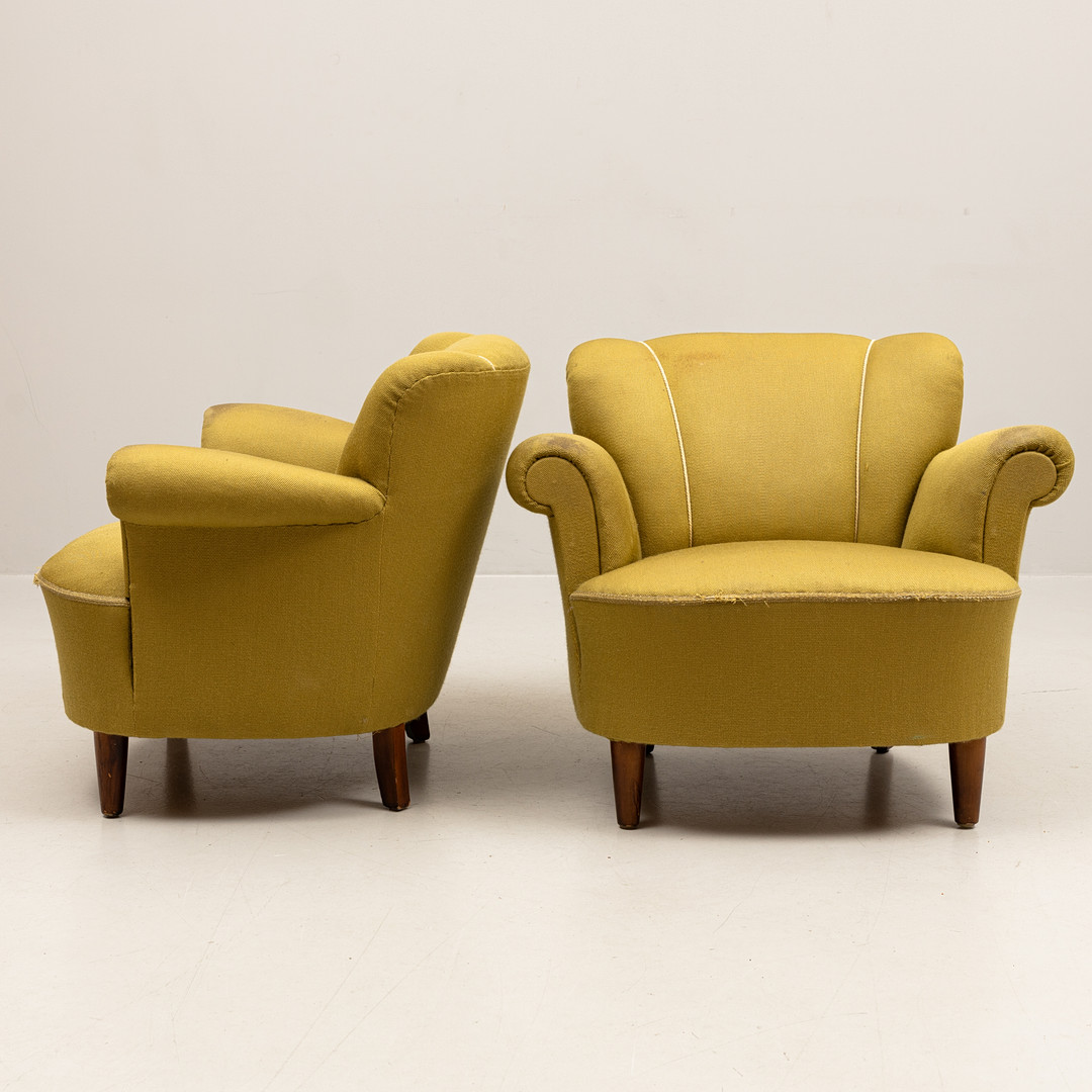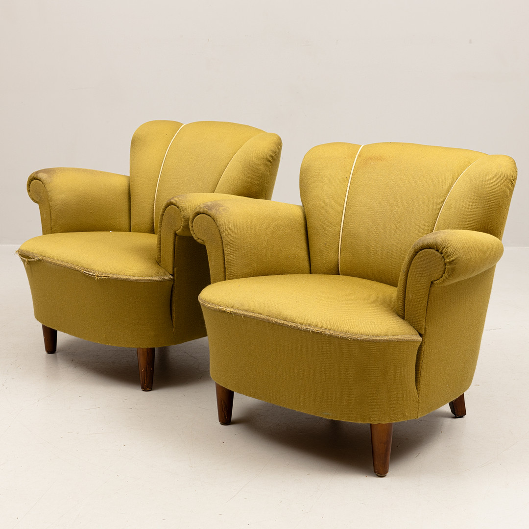 4333736. LÆNESTOLE, et par, tekstilpolstrede, 1940'erne.