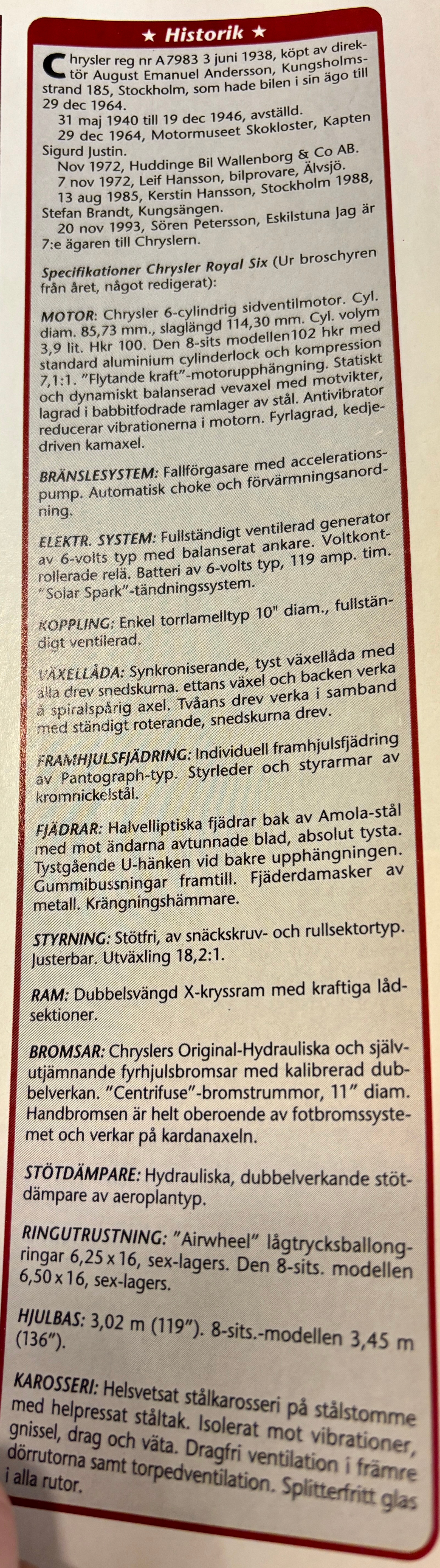 4333972. CHRYSLER ROYAL TOURING 4.0, 1938.
