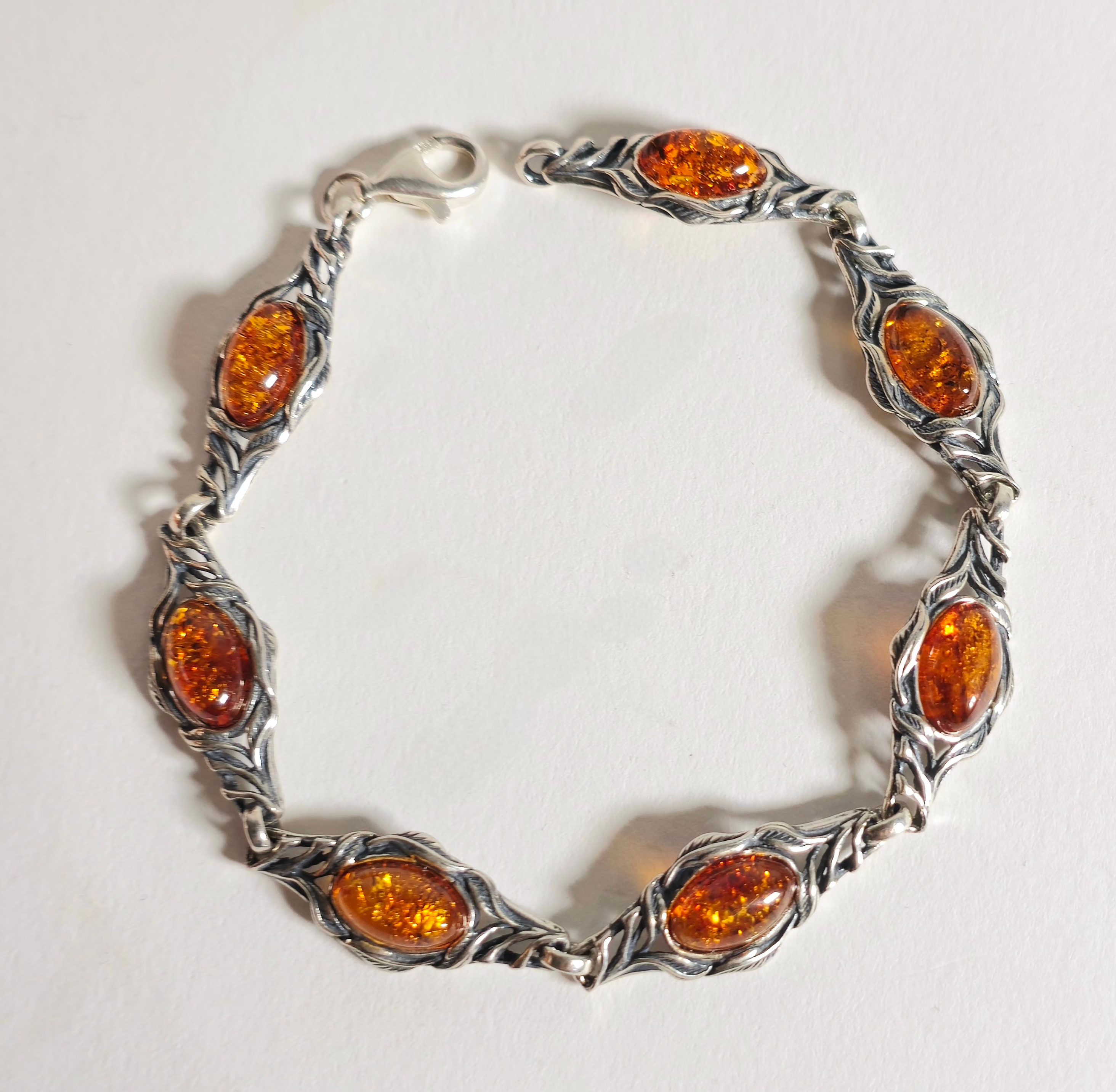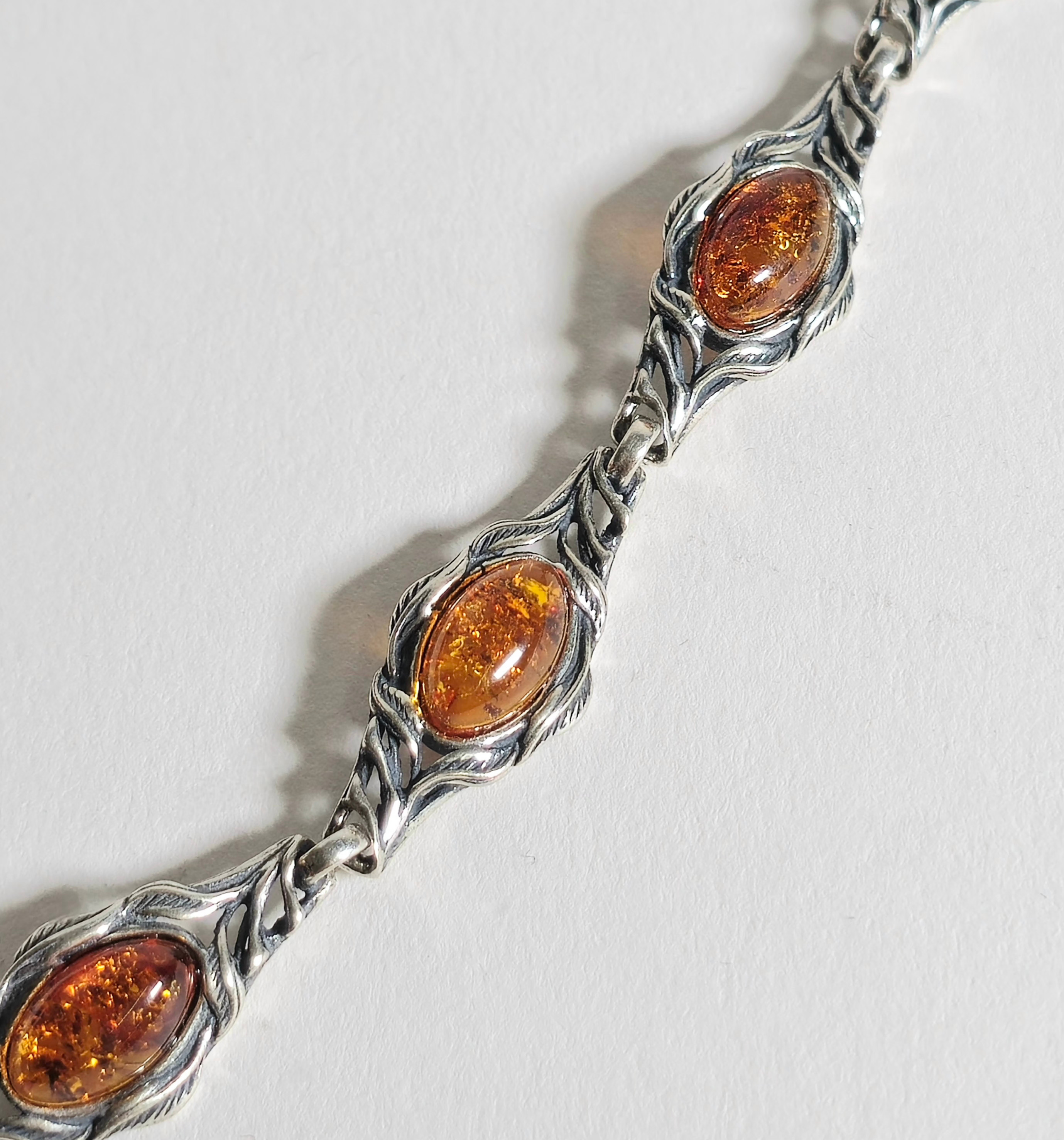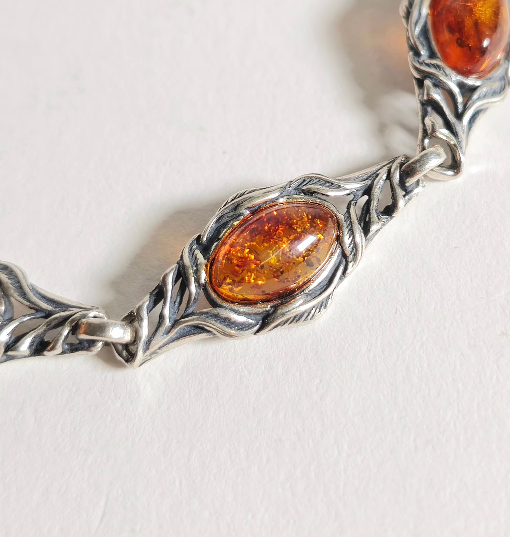 4336380. SØLV ARMBÅND MED NATURLIG RAV.