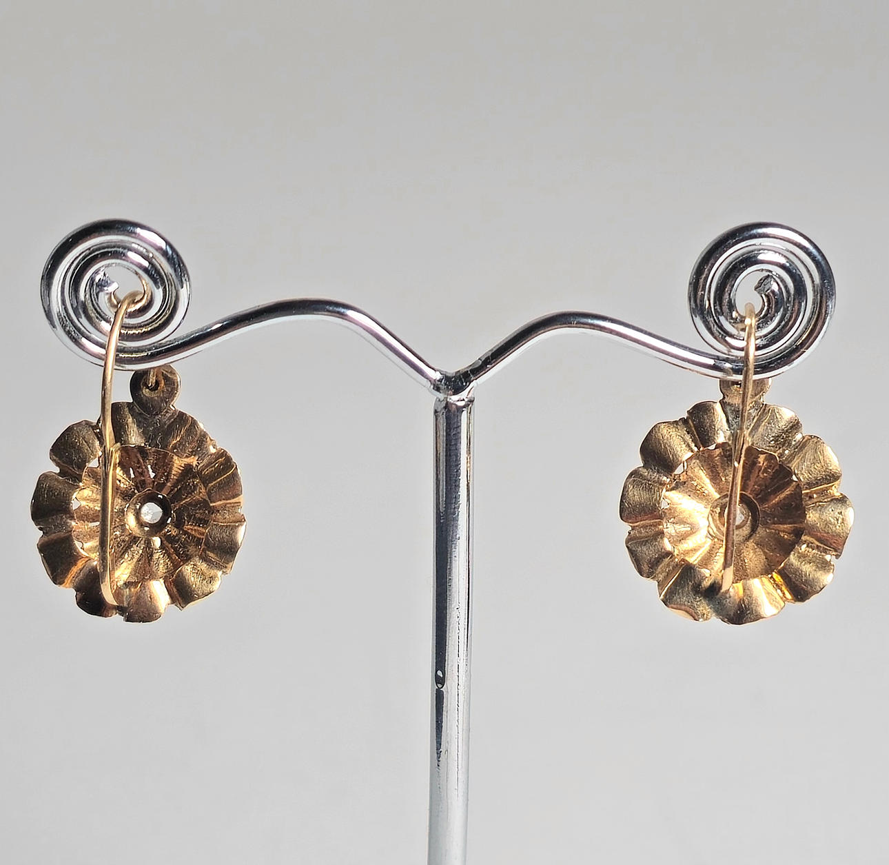 ØRERINGE I 18K GULD BLOMSTERDESIGN. 1950'ERNE.