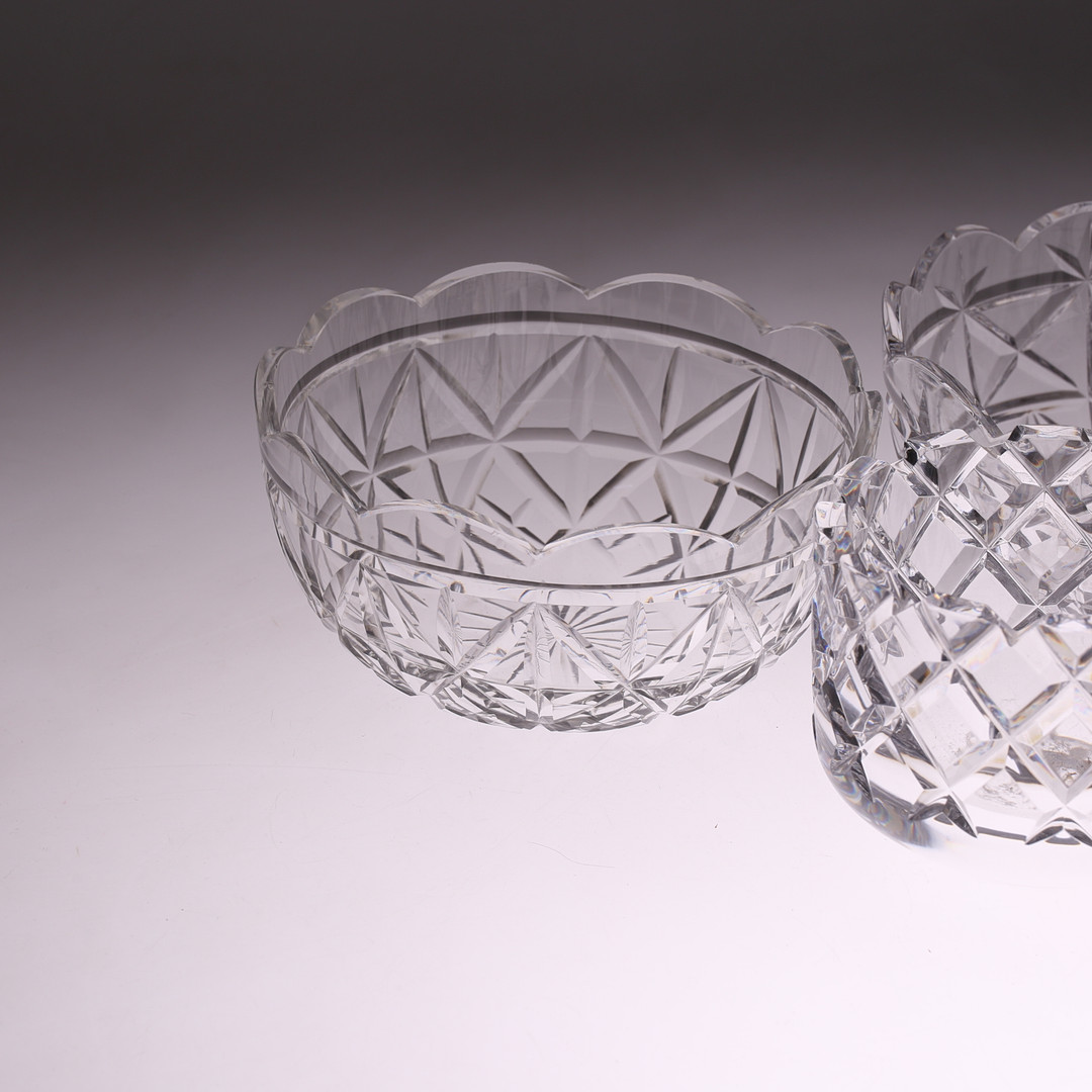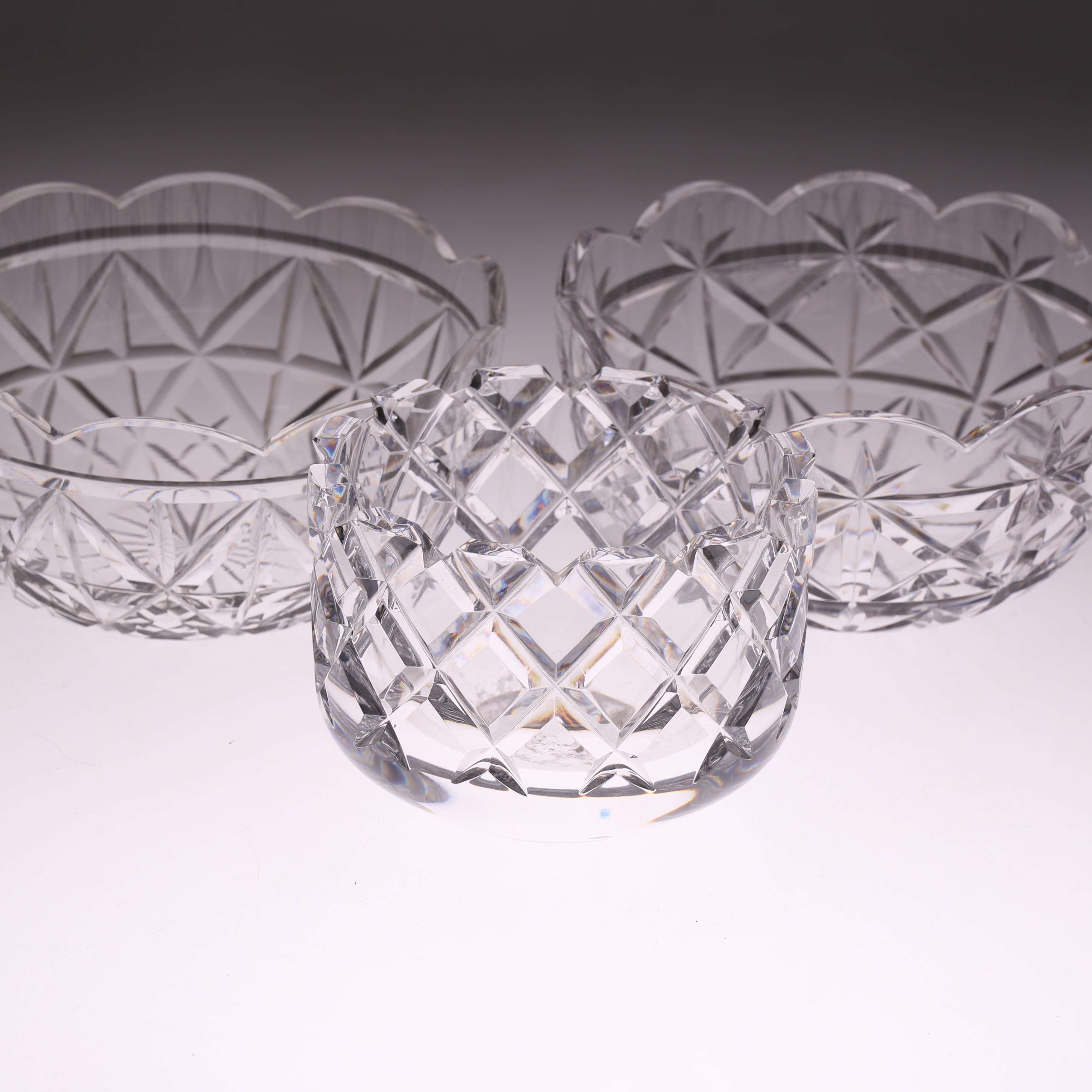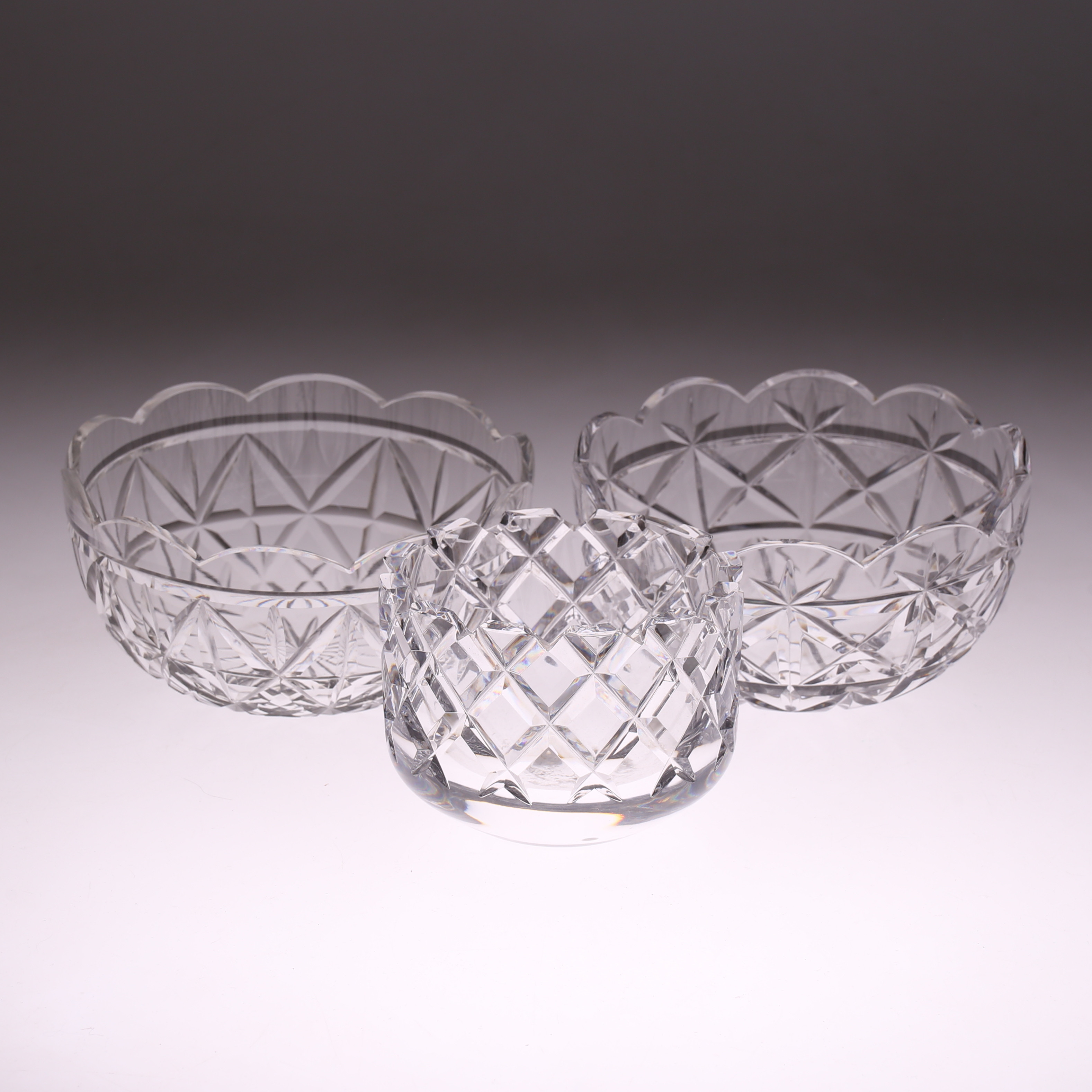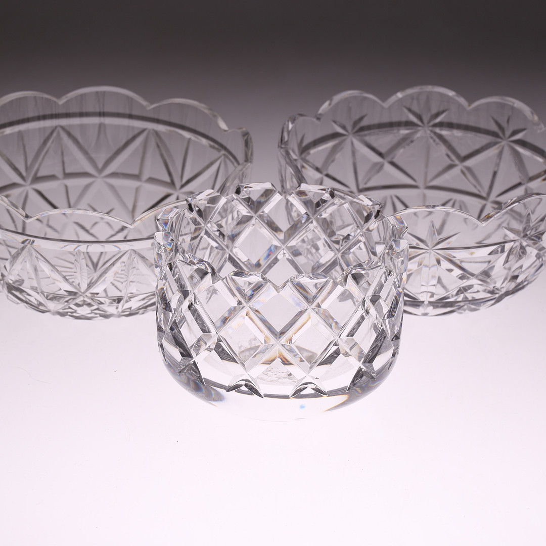 4337310. Et sæt med 3 glasskåle, herunder Orrefors.