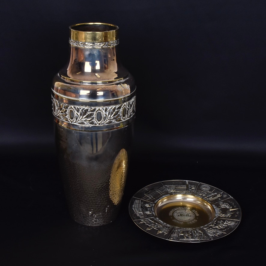 4337767. Urne og mindeplade, nikkelsølv, 20. århundrede.