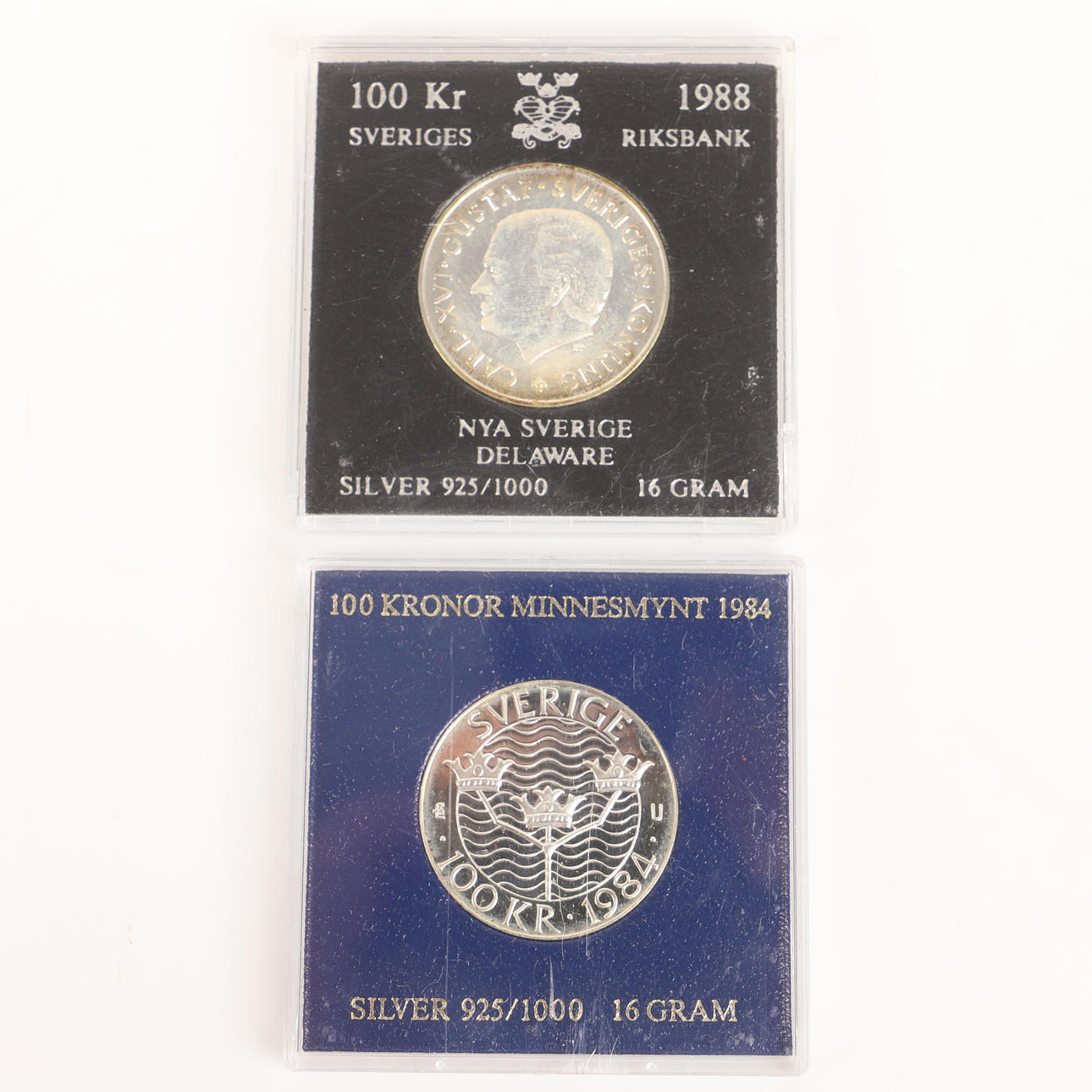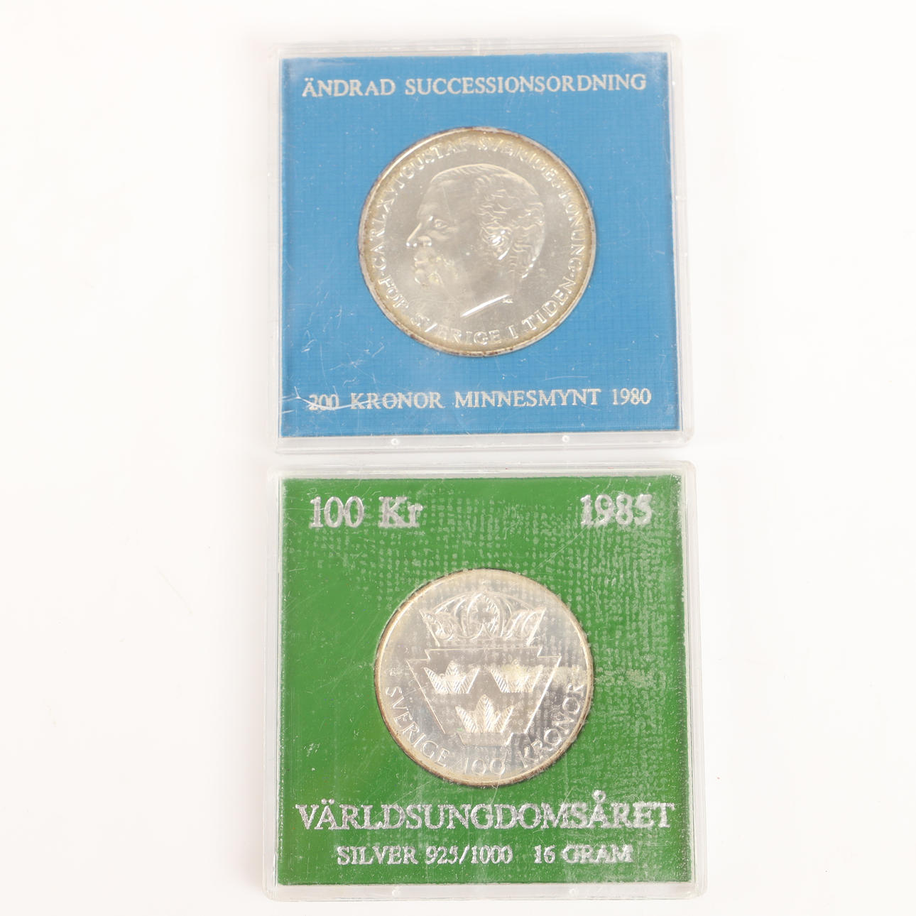 4338682. MINDEMØNTER, 8 stk., 100-200 kr, Sverige.