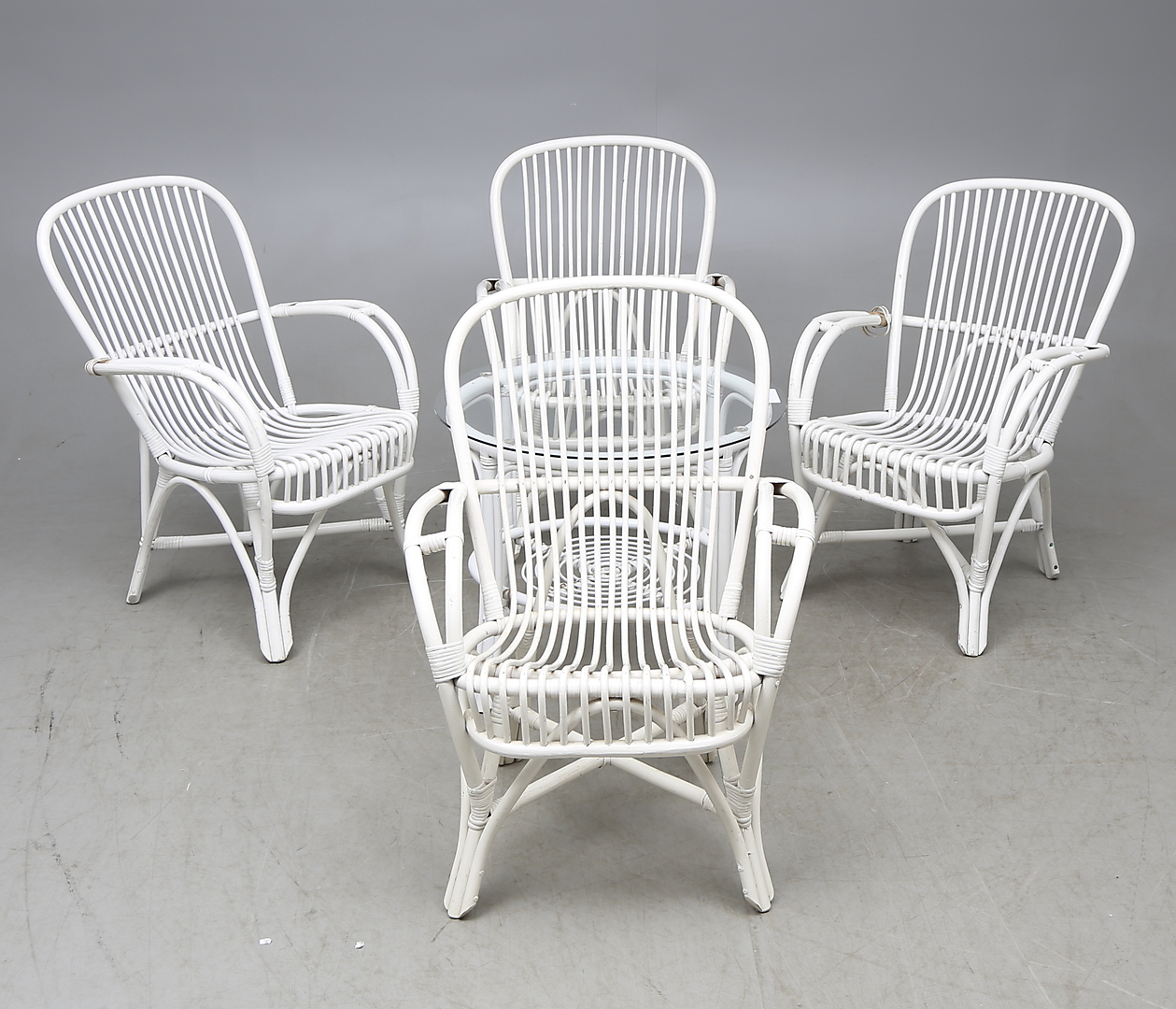 433898. UDENDØRSMØBLER, 5 stk, rattan, 1900-tallet.