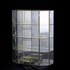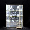 4339604. VITRINESKAB, glas og messing, ætset indretning, kan hænges op.