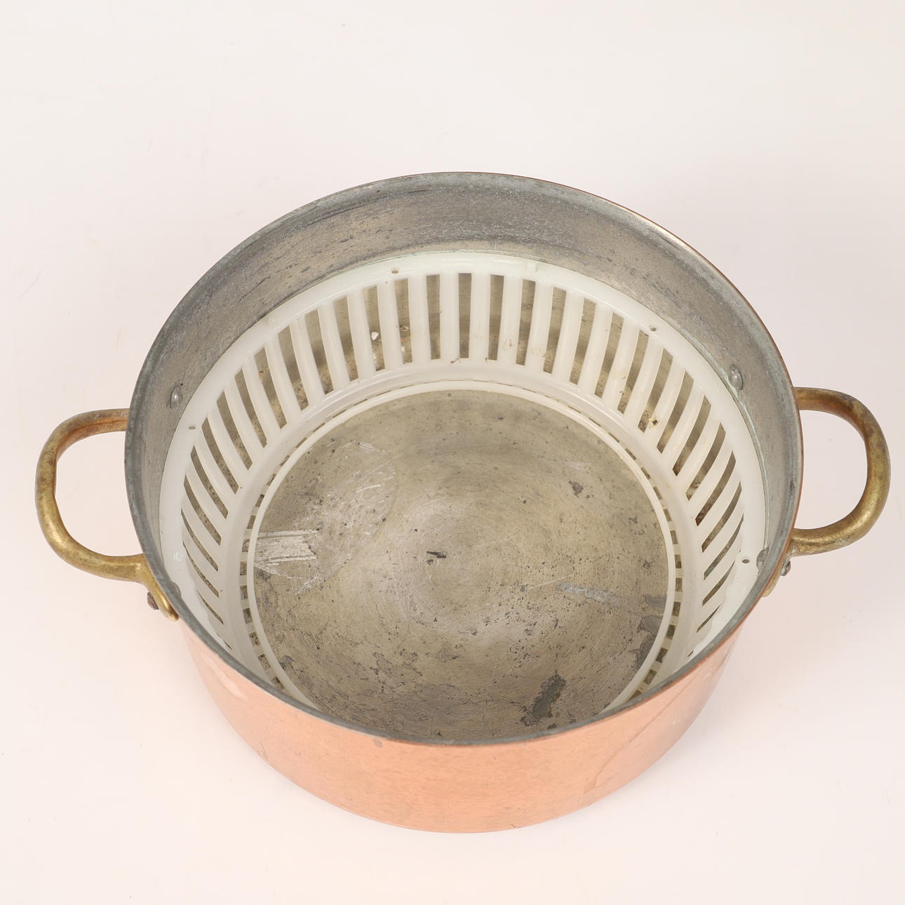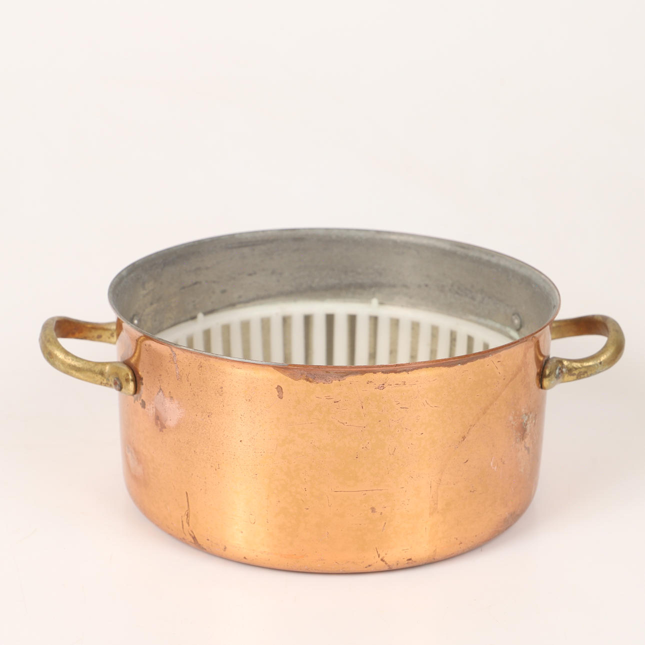 4339614. KASTRULLER ETC., 4 stk., kobber/messing, 20. århundrede.