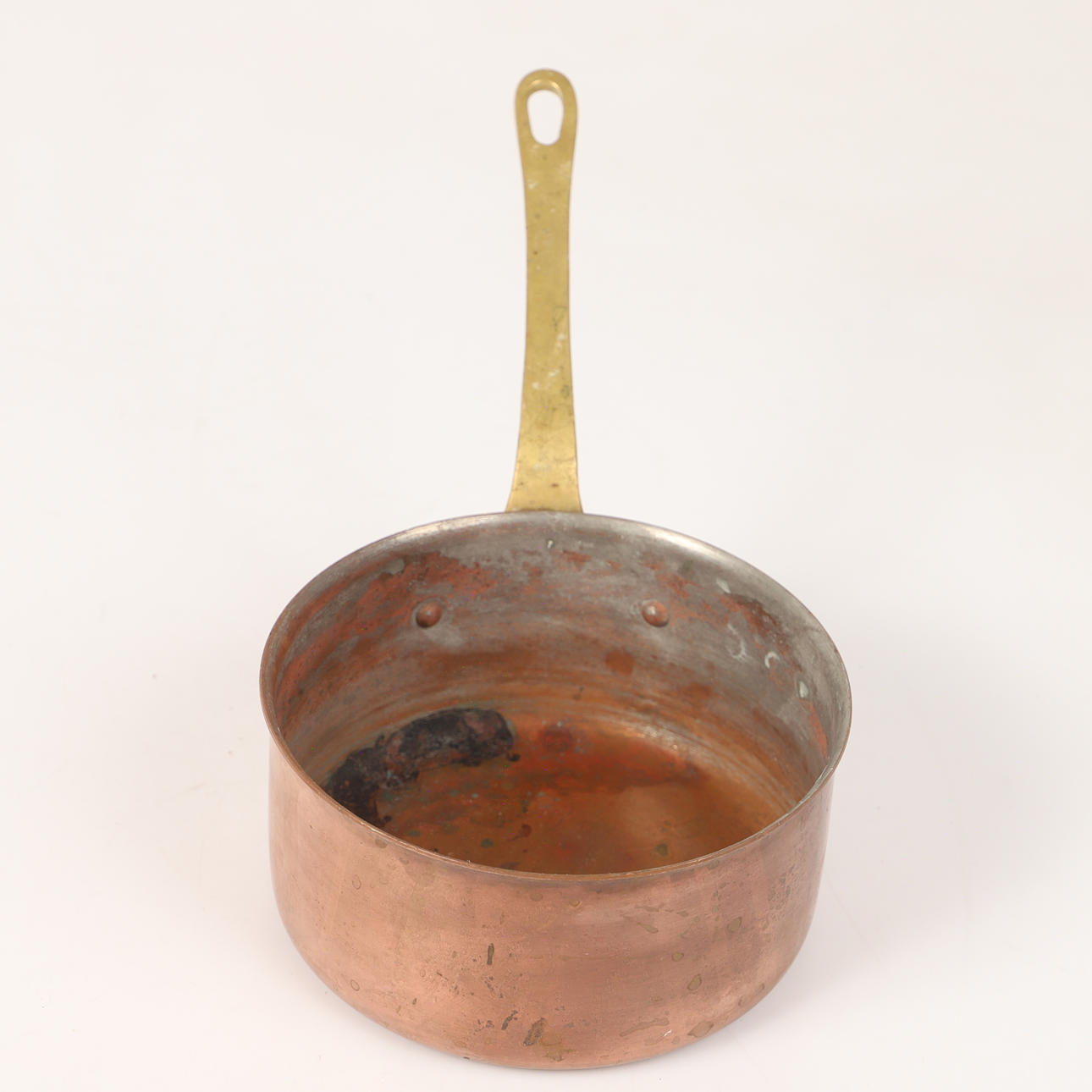 KASTRULLER ETC., 4 stk., kobber/messing, 20. århundrede.