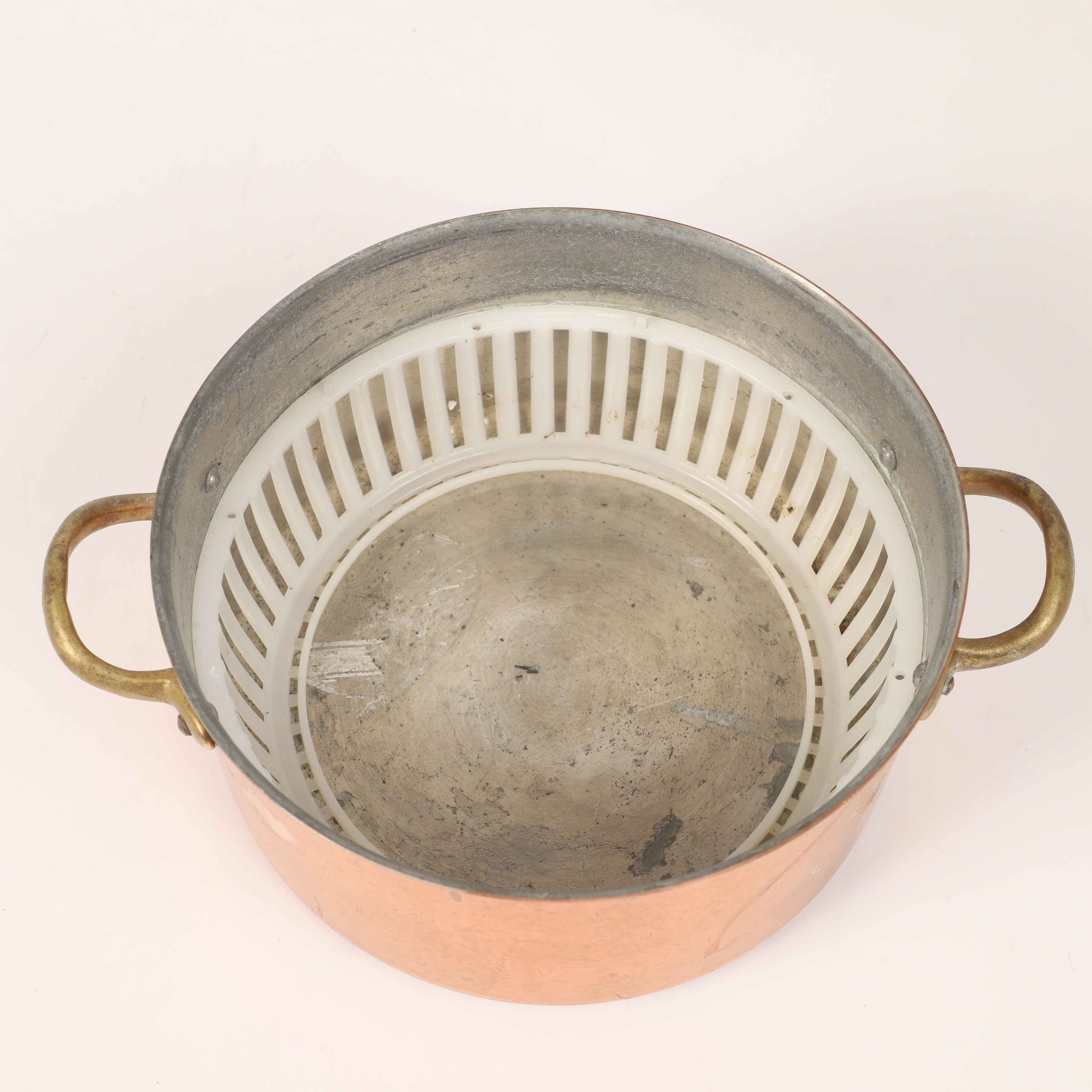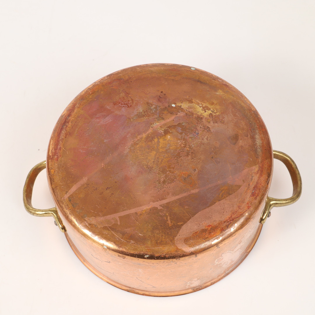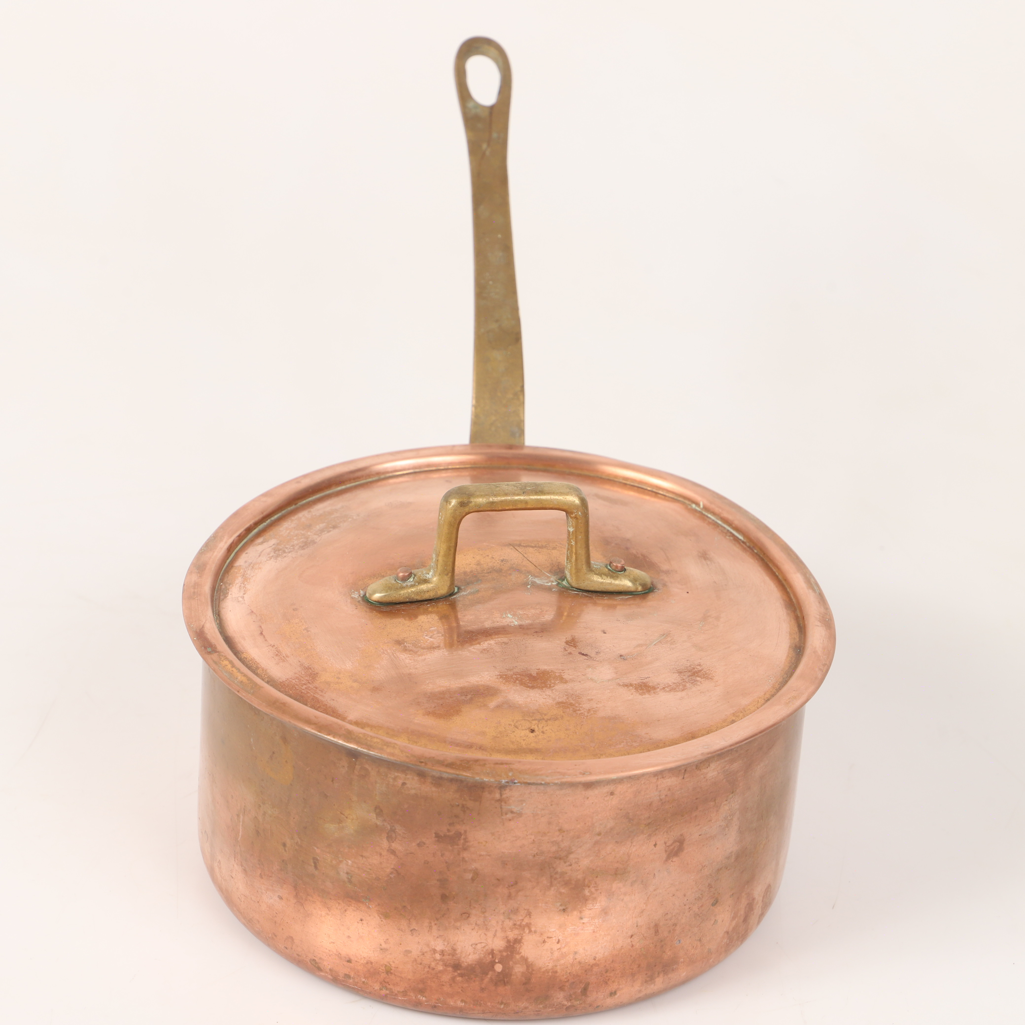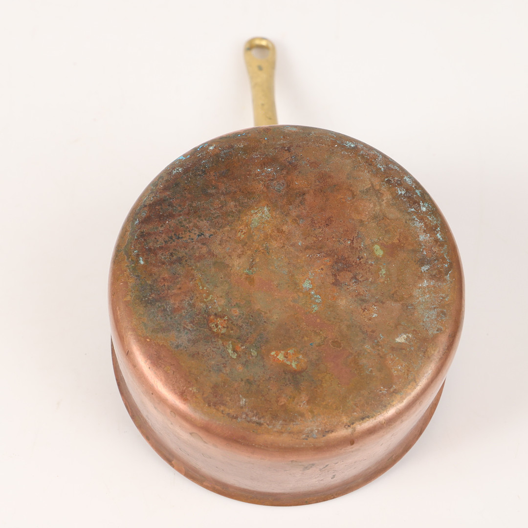 4339614. KASTRULLER ETC., 4 stk., kobber/messing, 20. århundrede.