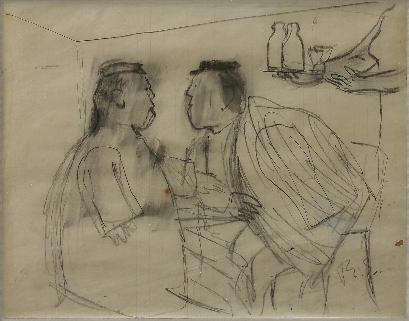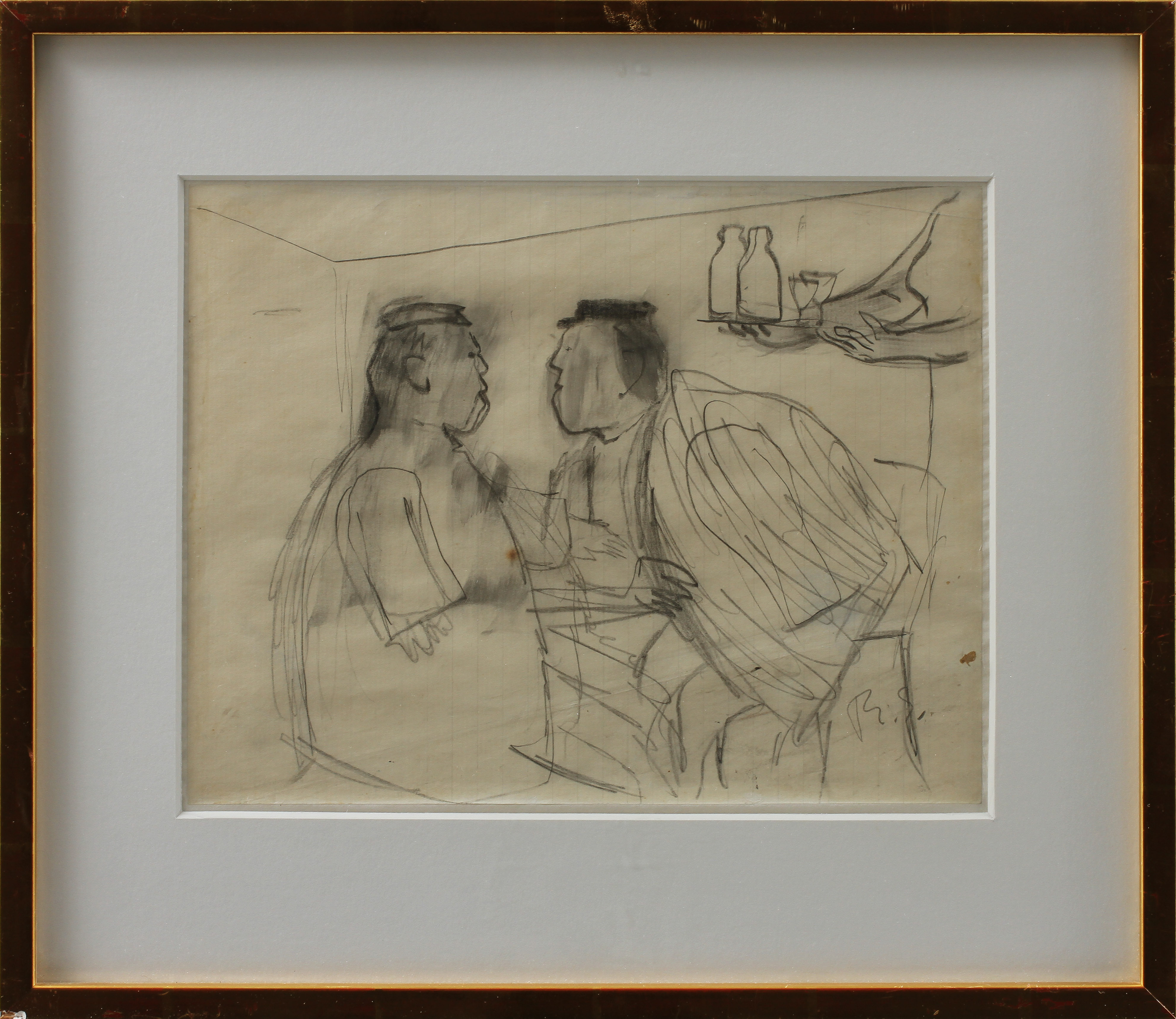 433970. RAGNAR SANDBERG. Cafesamtale, blyanttegning, skilt.