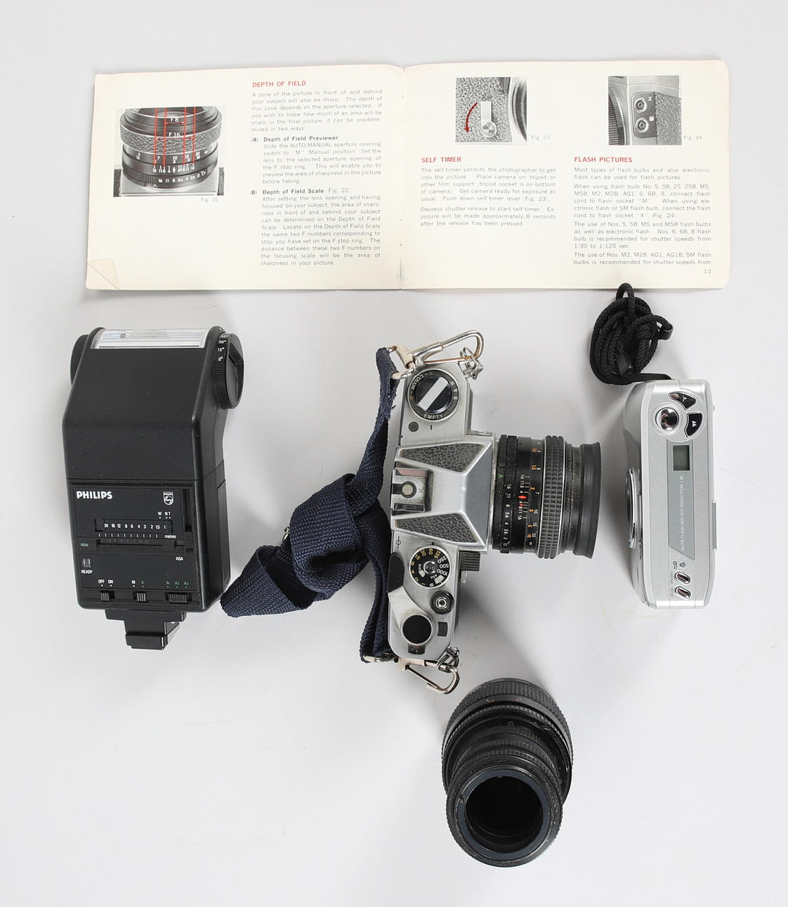 KAMERA, Chinon og Zoom 60, objektiv og flash.