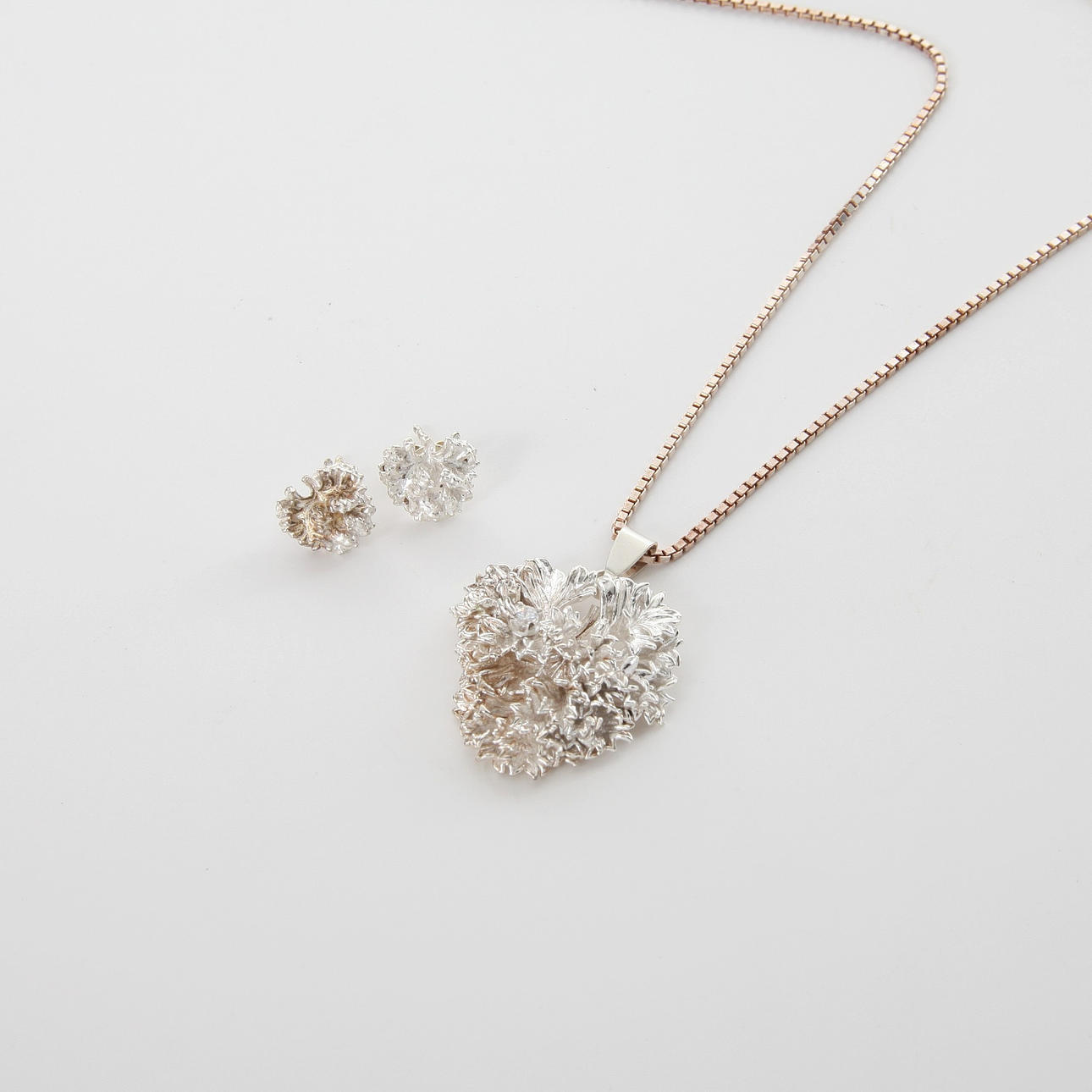 1 stk venetiansk halskæde i sølv med vedhæng, sølvbelagt persille krone med kubisk zirkon. Flora Danica, Danmark