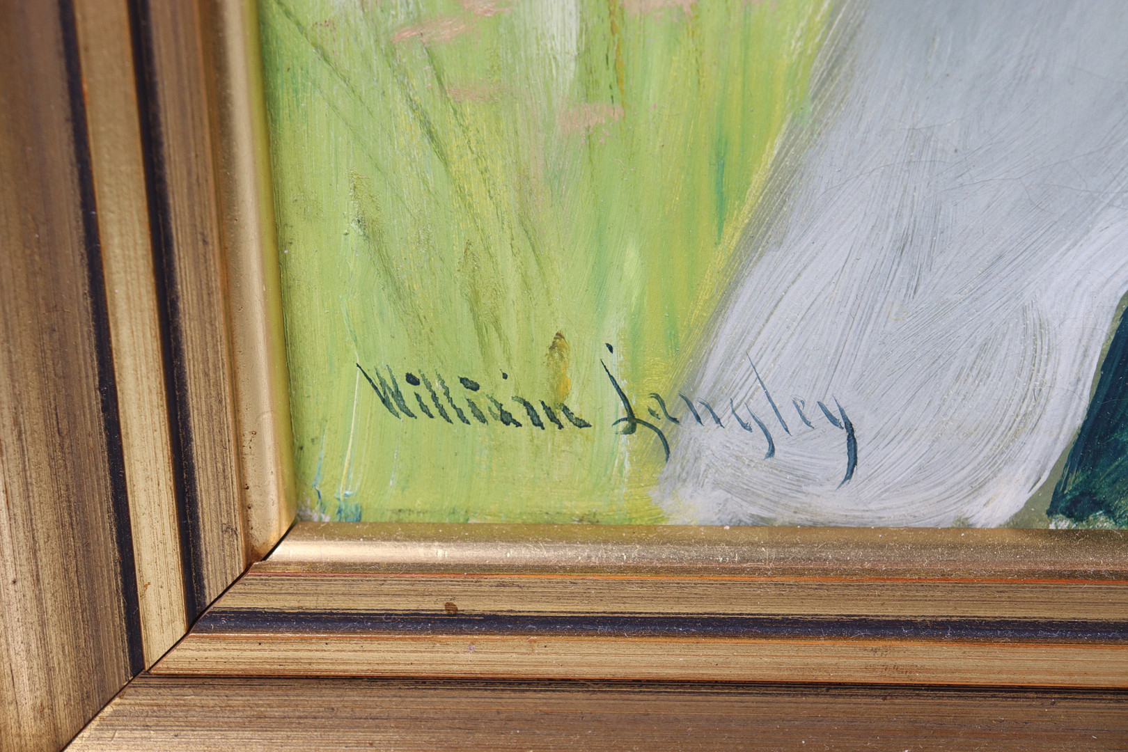 4340248. WILLIAM LANGLEY, olie på lærred, pige plukker æbler.