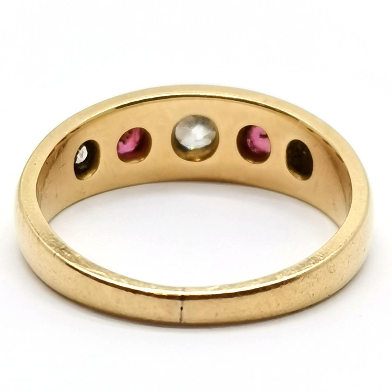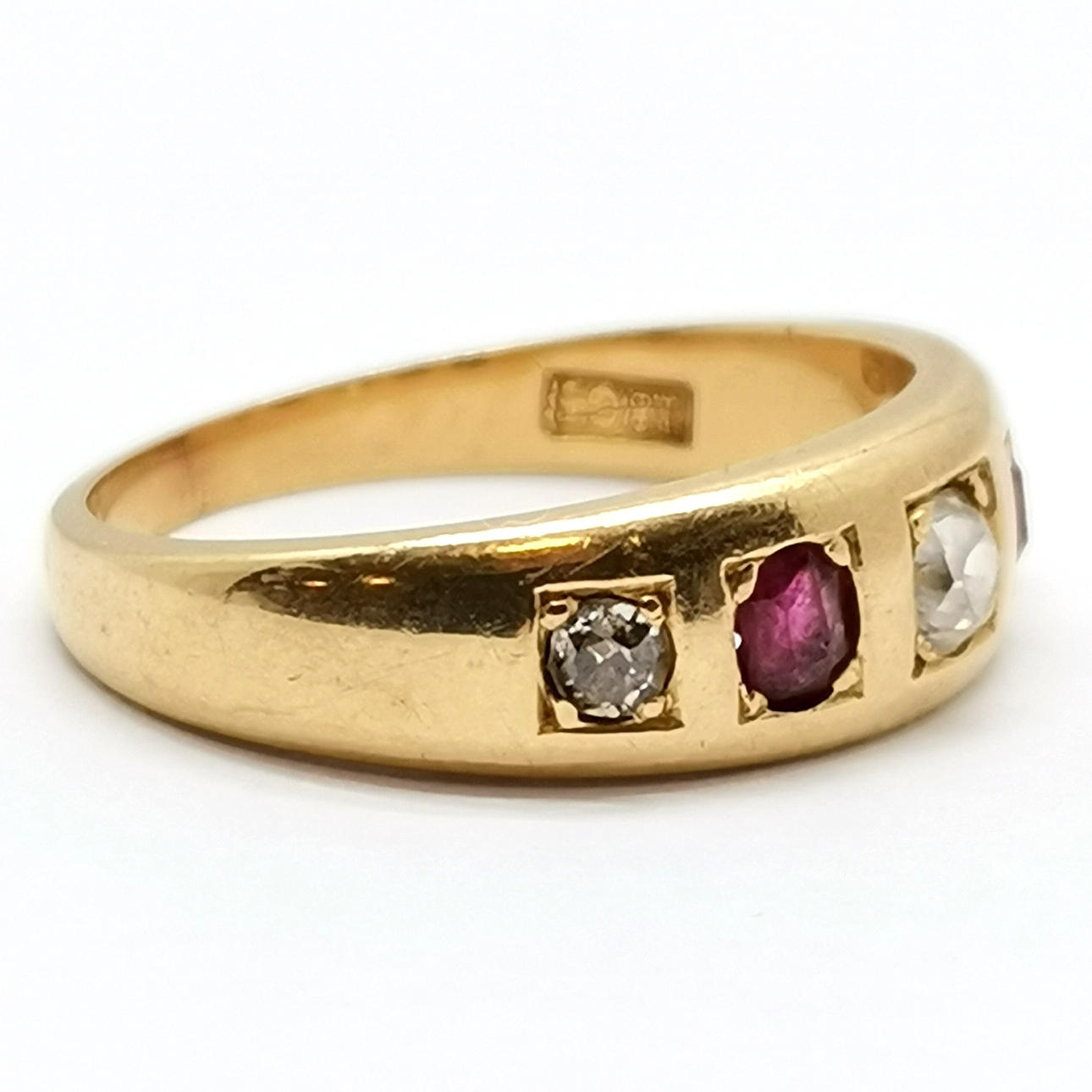 18kt mærket guld rubin & diamant sigøjnersæt stilring - størrelse M & 4.6g totalvægt.