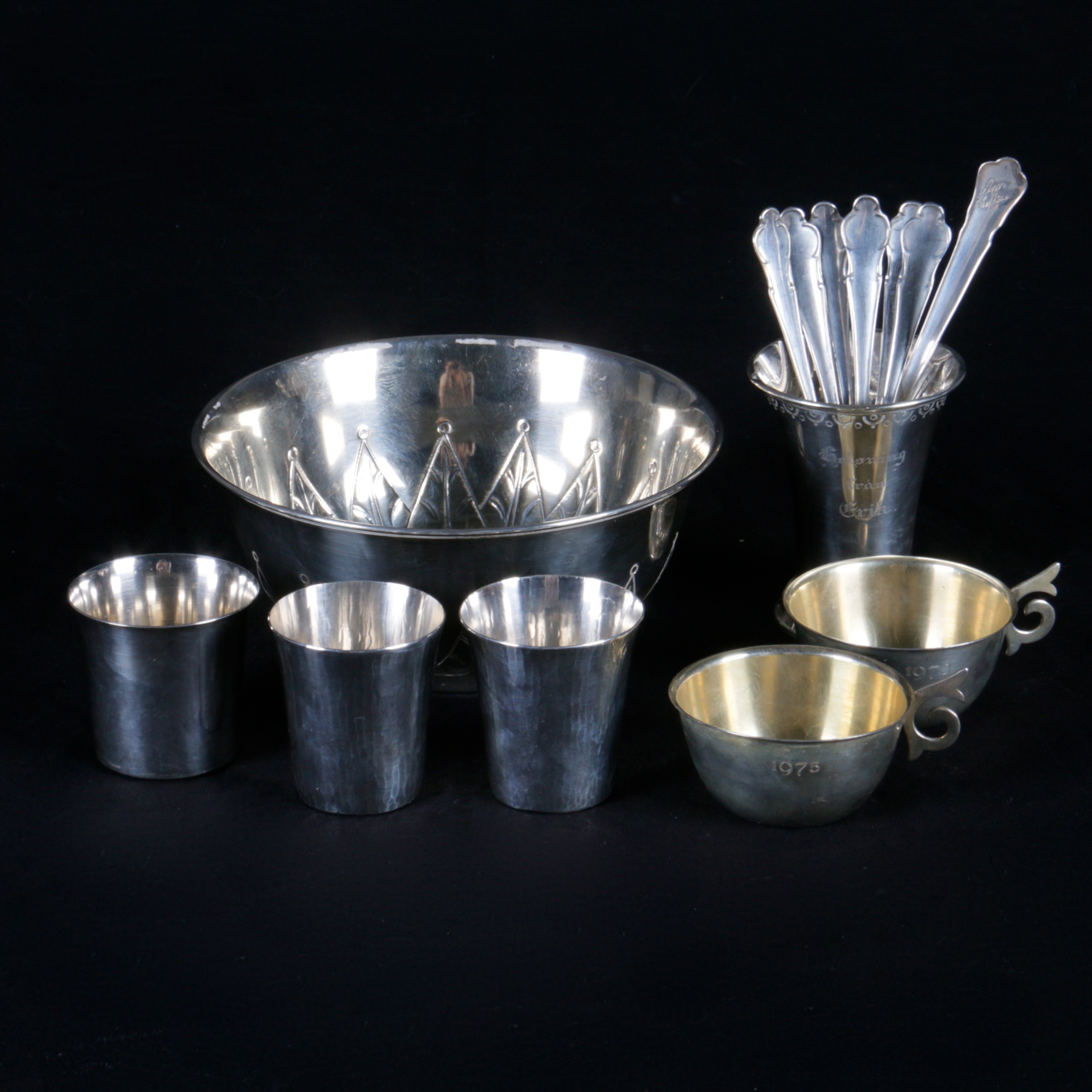 434194. SØLVOBJEKTER, 7 dele, 1900-tallet, vægt ca 400 gram.
