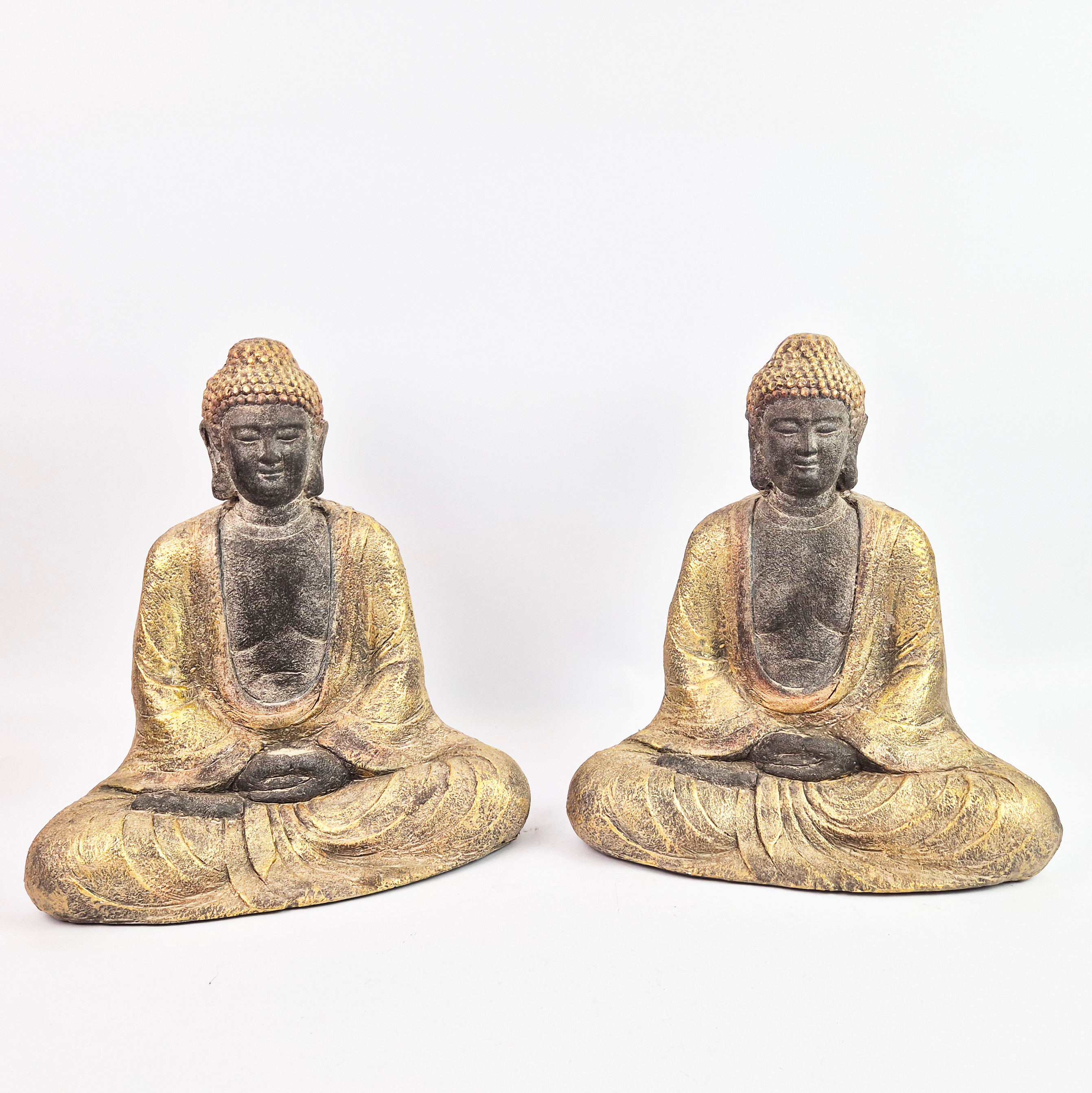 4342015. SIDDENDE SKULPTURELLE BUDDAHS, ET PAR.